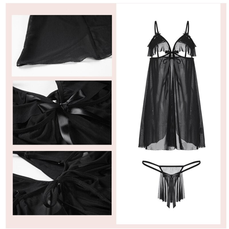 sexy lingerie night dress women underwe erotic lingerie sensual lingerie woman Nightgown thongs Underwear set see-through dress