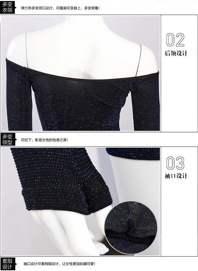 Sexy Sheer & Opaque Tiny Rhinestone Silky Off the Shoulder Long Sleeve Bodycon Mini Dress Night Club Bodysuit Clubwear