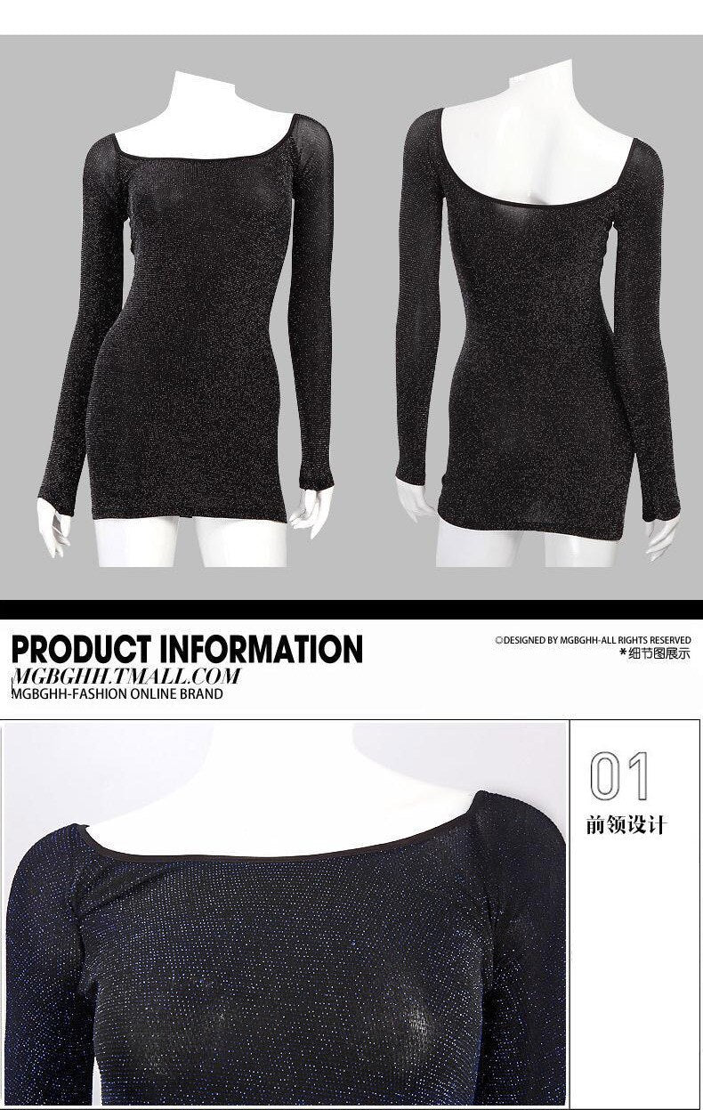 Sexy Sheer & Opaque Tiny Rhinestone Silky Offer the Shoulder Long Sleeve Bodycon Mini Dress