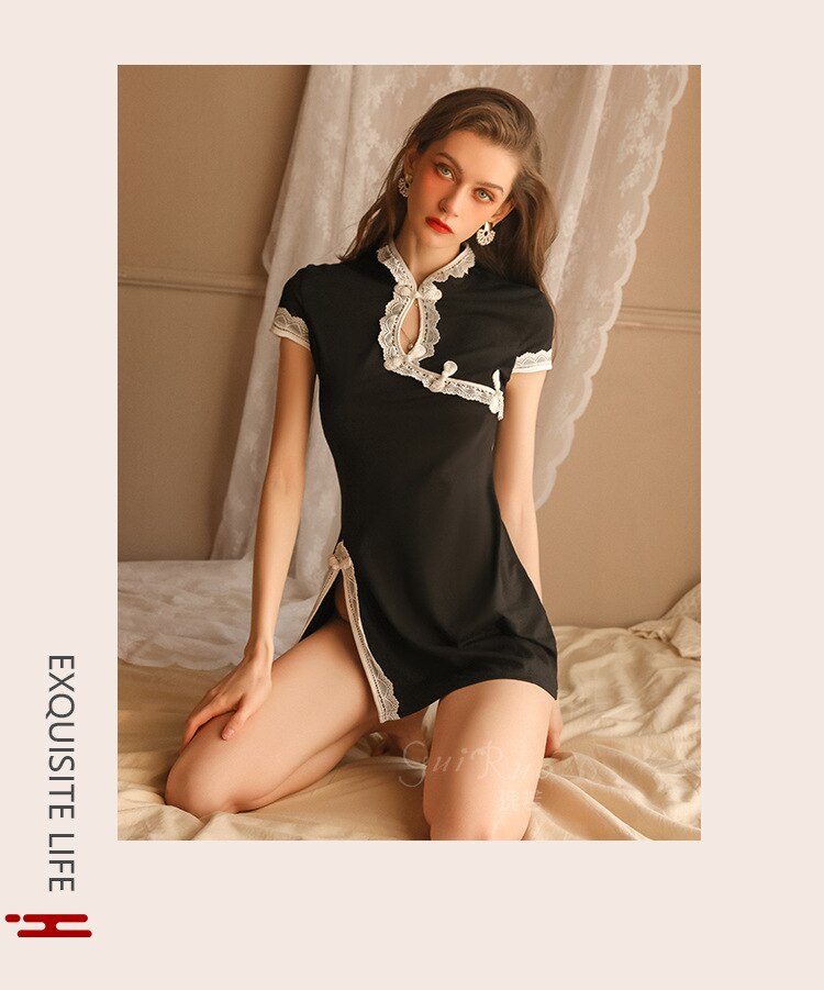Silky Sexy Cheongsam Women's Summer Lace Strap Nightdress Backless Temptation Sleepwear Nightgowns Lady Beauty Back Night Dress