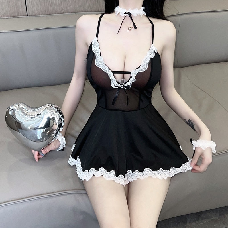 Sleepwear Womens Sexy Pajamas Lingerie Suspenders Ultrashort Night Dress Babydoll Dress Woman Summer Thin Pure Desire Wind Skirt