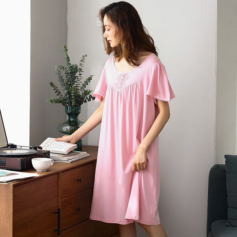 Soild Nightwear Women Modal Sweet Princess Sleepwear XXXL Nightdress Loose Soft Nightgowns Summer Female Homewear