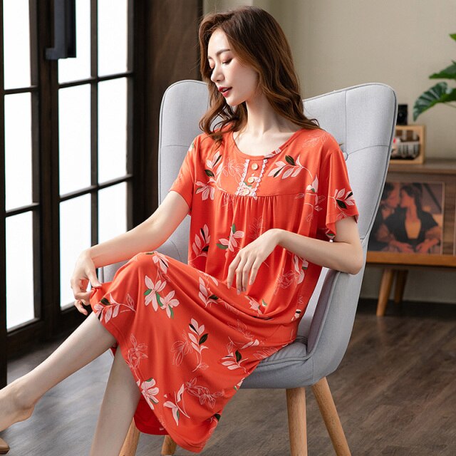 Summer Sexy Modal  Sleepwear Nightgown Women Night Shirt Dress Female Lounge Home Clothes Modal Nighty Gown Sleep Top