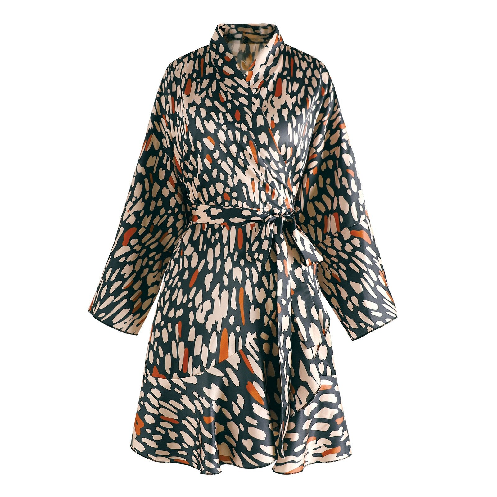 Summer Women Satin Pajamas Robes Kimono Bathrobe Ruffles Belted Fashion Comfortable Loungewear Sleepwear Female's Home Clothes