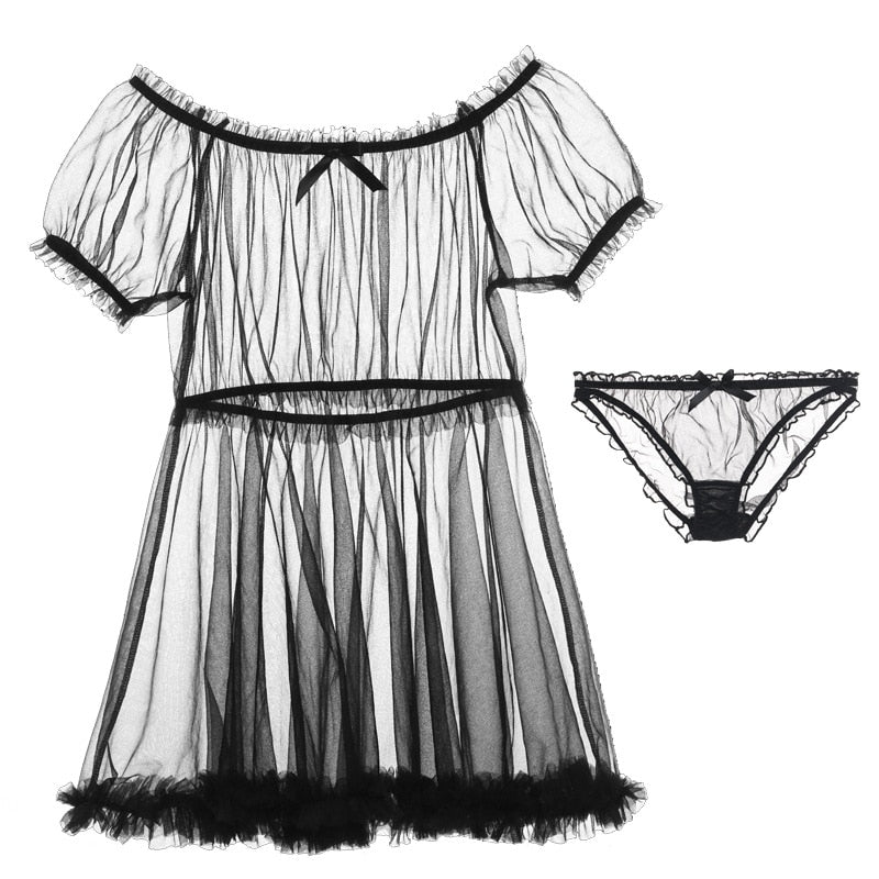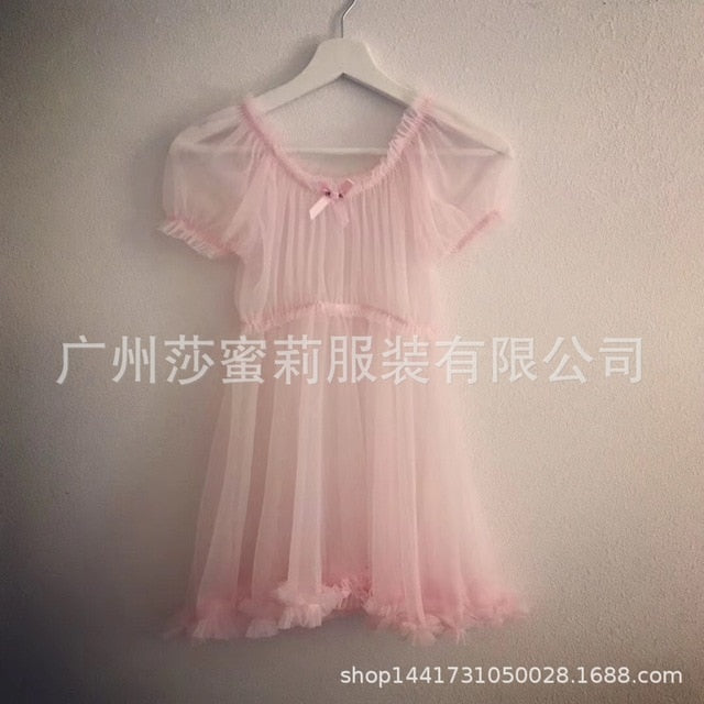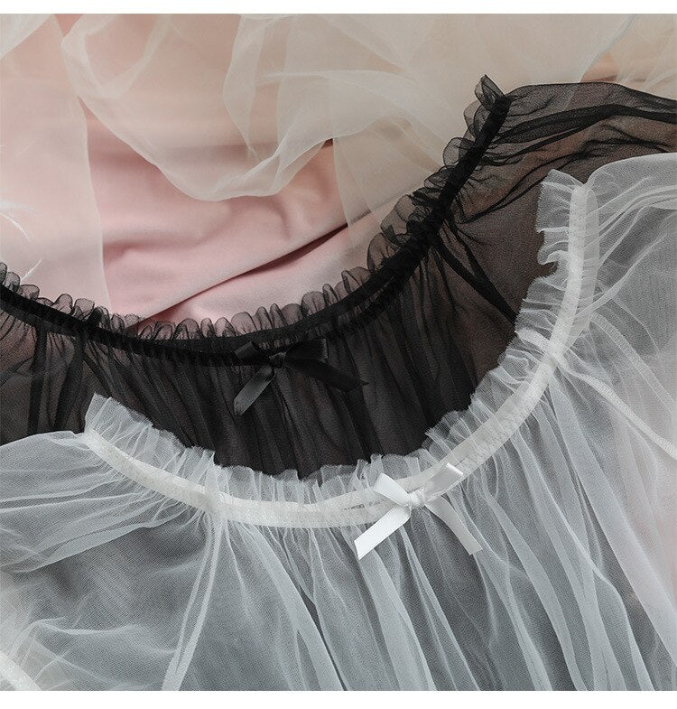 Tulle Temptation Sexy Lingerie Princess Dress Sexy Sleepwear Word Shoulder Mesh Tutu Night Dress Nightgowns Women