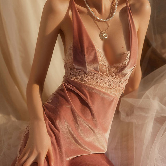 Velvet Backless Nightdress Lace Temptation Sleepwear Romantic Nighties