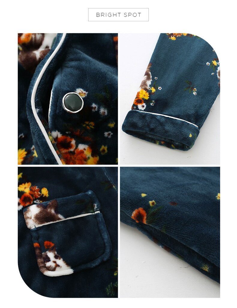 Warm Winter Pajamas Set Women Sleepwear Warm Flannel Long Sleeves Pajamas Dark Blue Homewear Thick Home Suit M L XL XXL XXXL