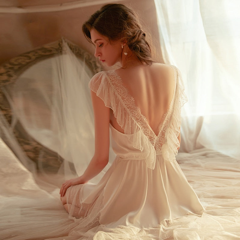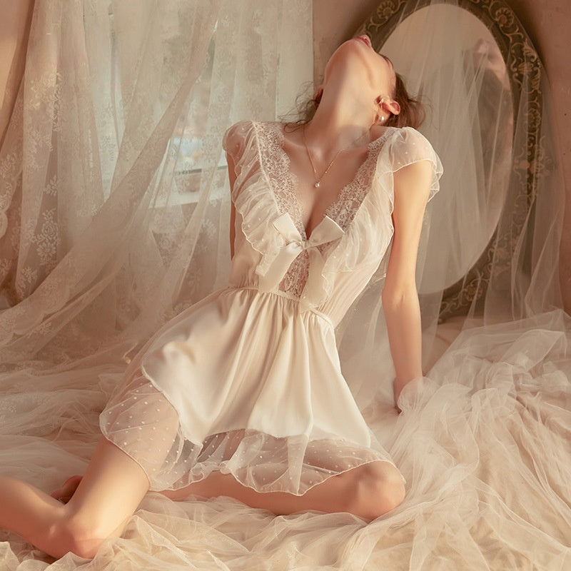 Women Sexy Lingerie Lace Nightdress Deep V Hot Thin Nightgown Home Clothing Suit Sleepwear Femme Skirt Wedding Night Underwear