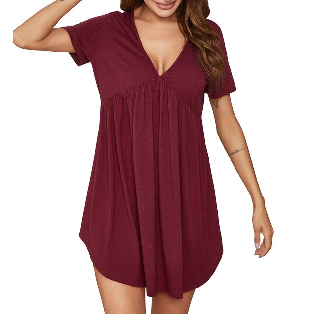Women Knitted Nightdress Sexy Deep V Neck Nightgown Pleated Soft Nightie Loose Sleepwear Nightwear Mujer Sleep dress
