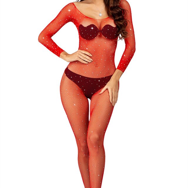 Women Sexy Lingerie Sex Exotic Jumpsuit Sequined Fishnet Mesh Bodystockings Open Crotch Sleepwear Babydoll Underwear