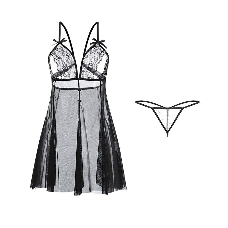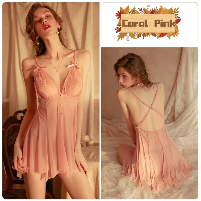 Women Sexy Nightwear Summer Sleepwear Perspective Temptation Sling Nightdress Thin Lace Hollow Backless Nightgowns Night Gowns