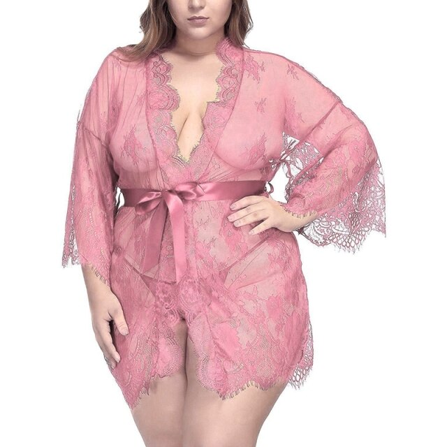 Women's robe Lace Nightie Bath Robe Hollow See-through Sleepwear Lingerie Terry robe Hot Erotic Kimono bathrobe Femme Home Suit