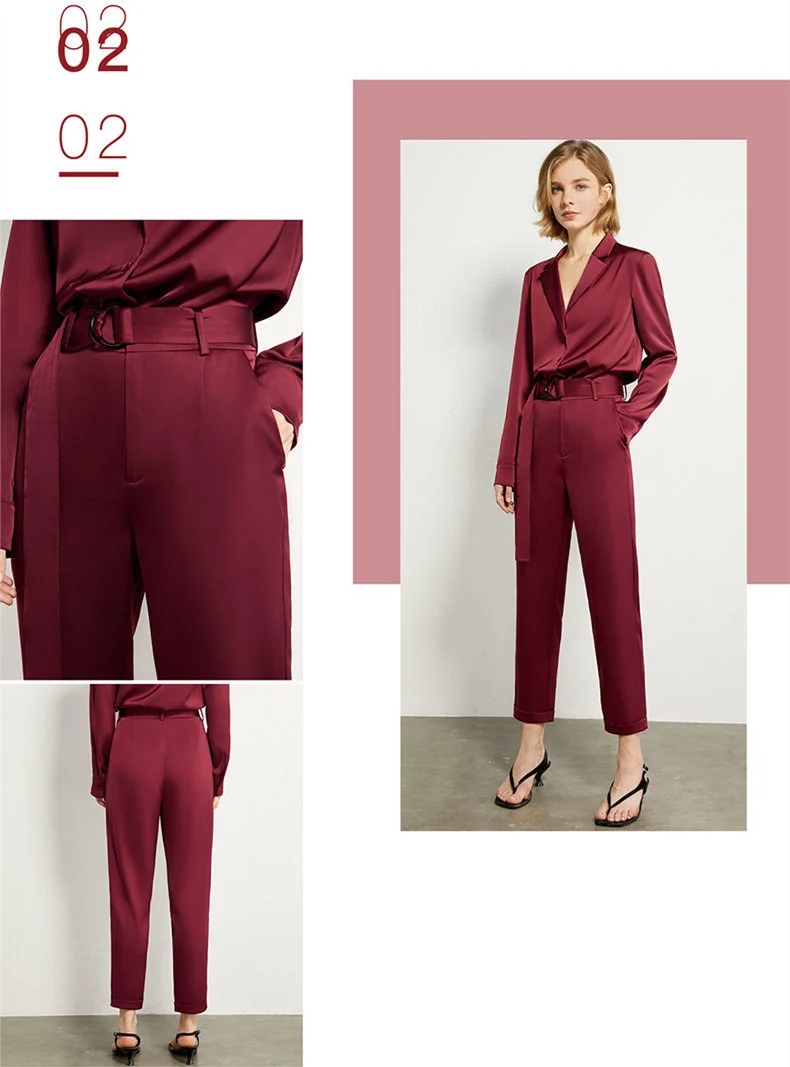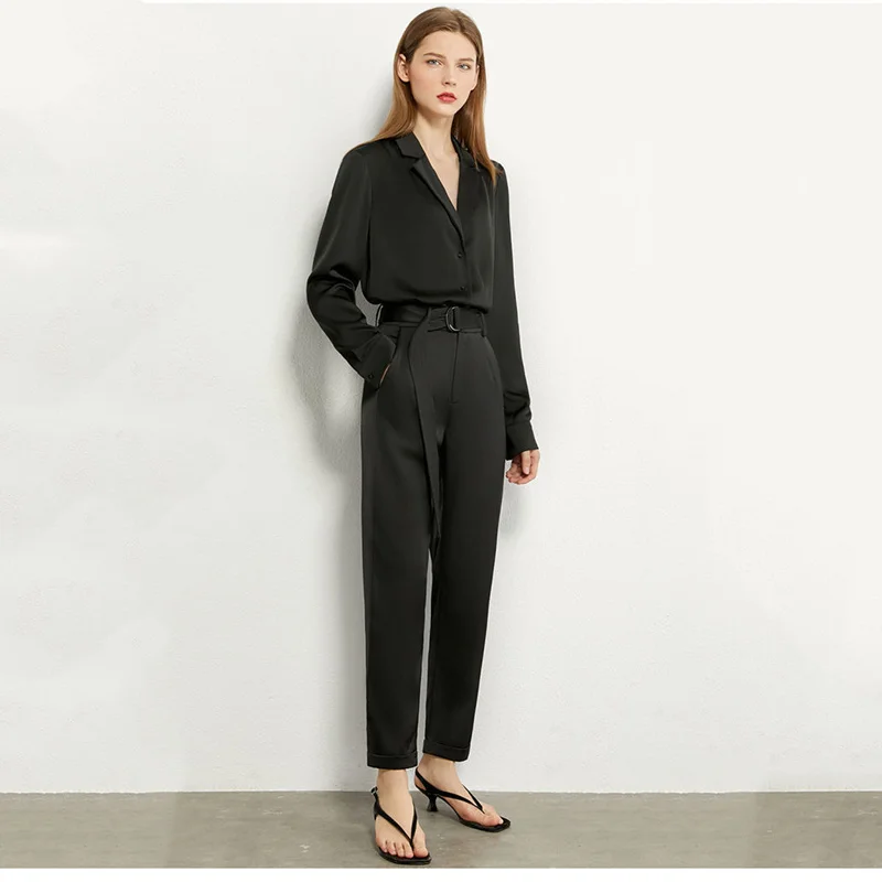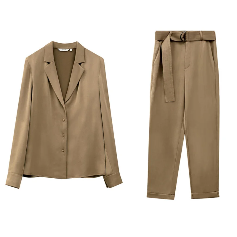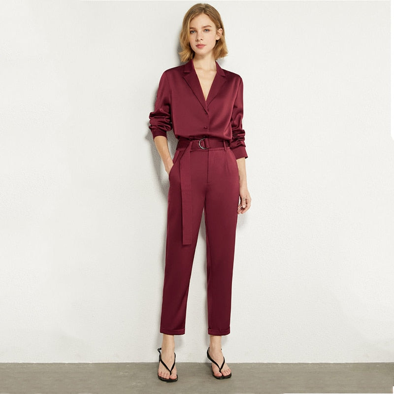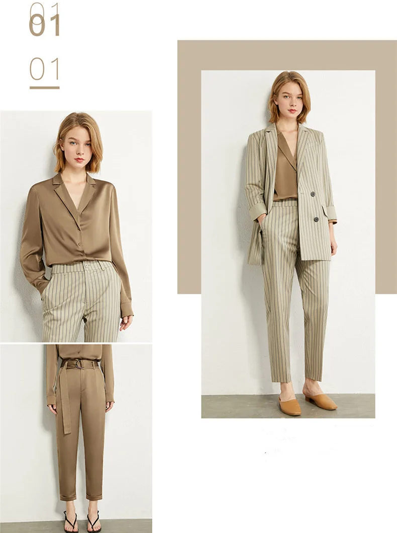2021 New Autumn Woman Fashion Business Set Office Ladies Suits Women Slim Lapel Loose Chiffon Blouse Long Pants Two Piece Suits