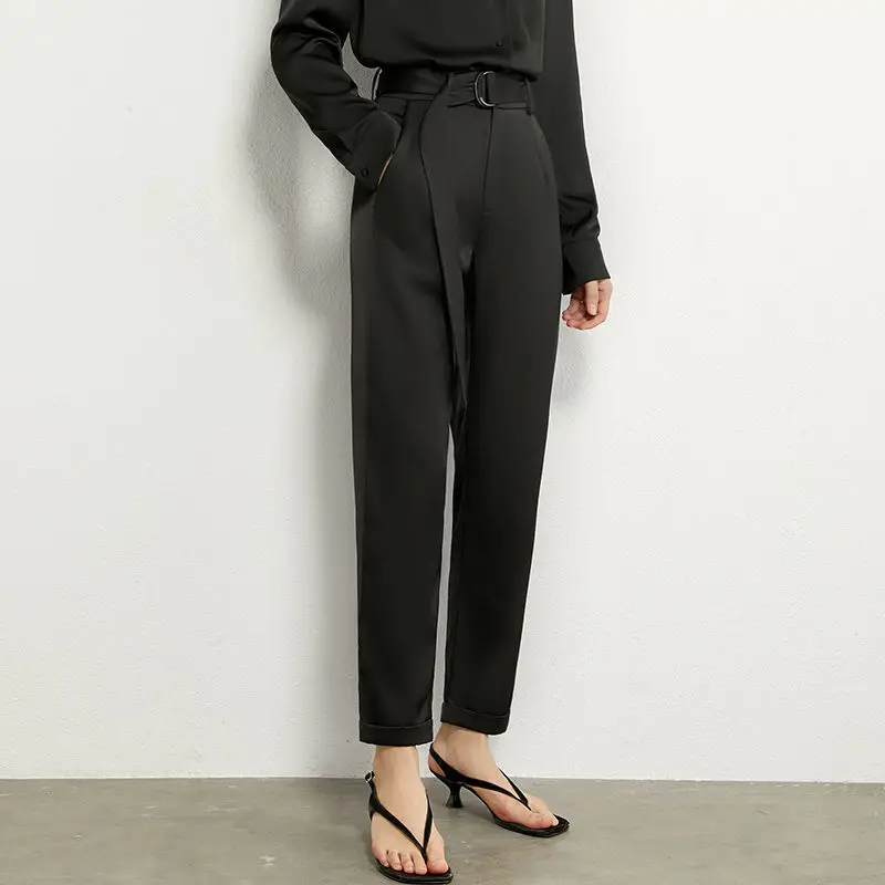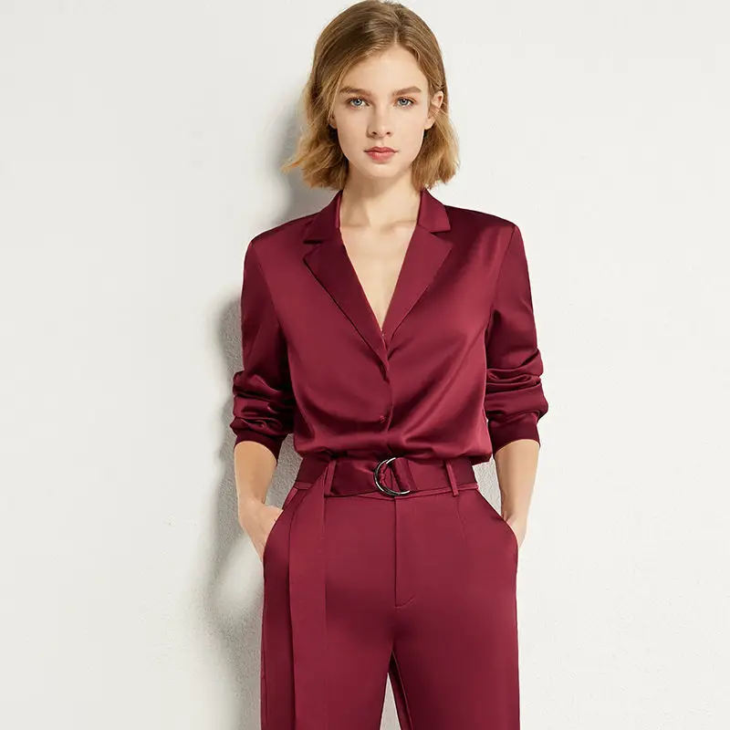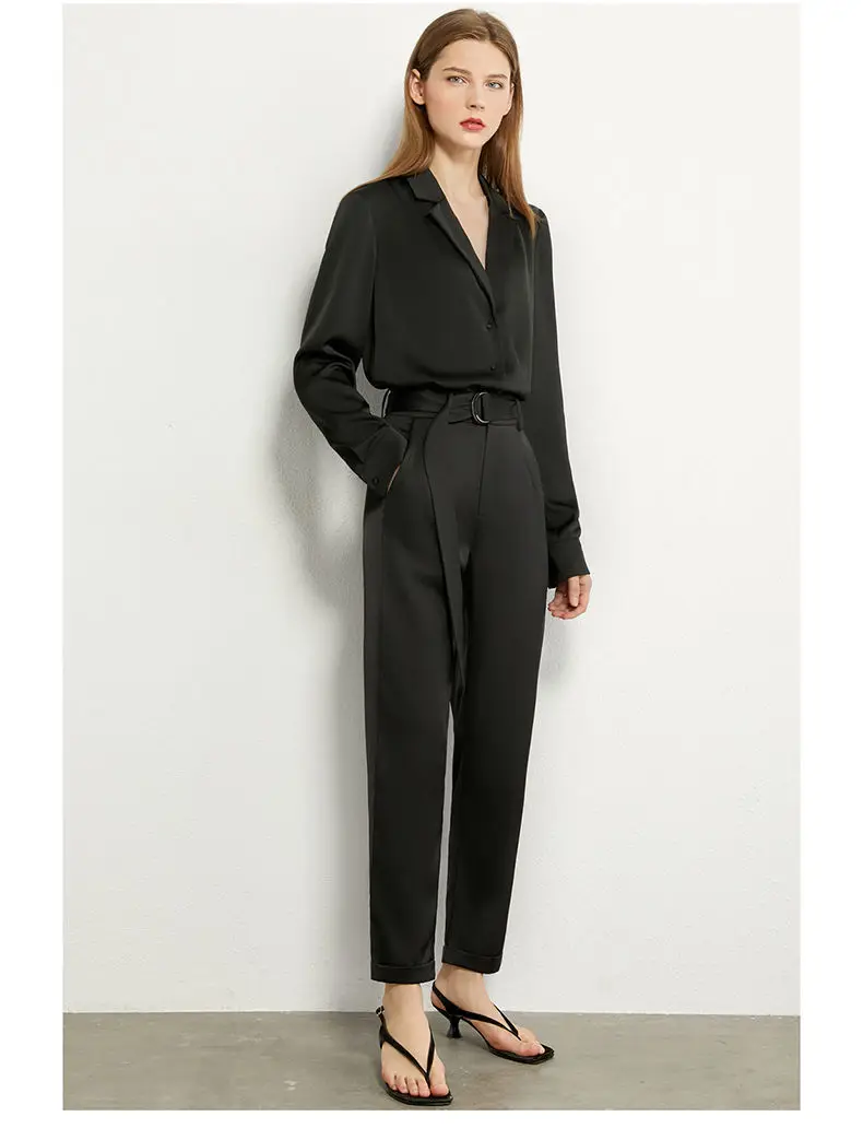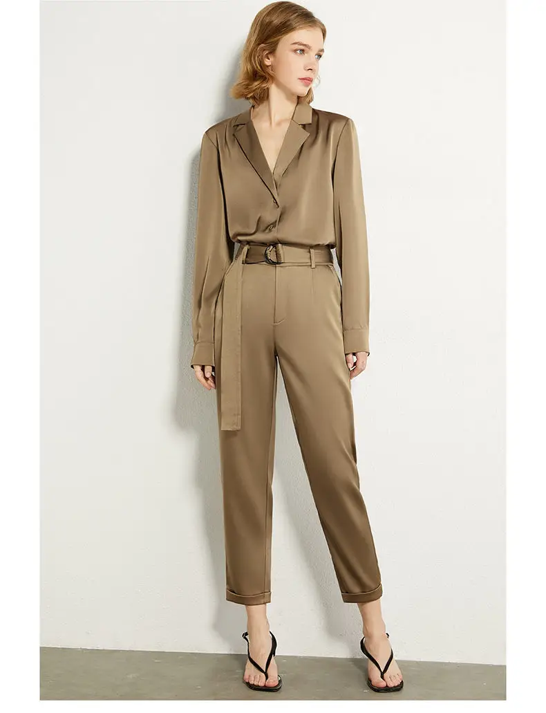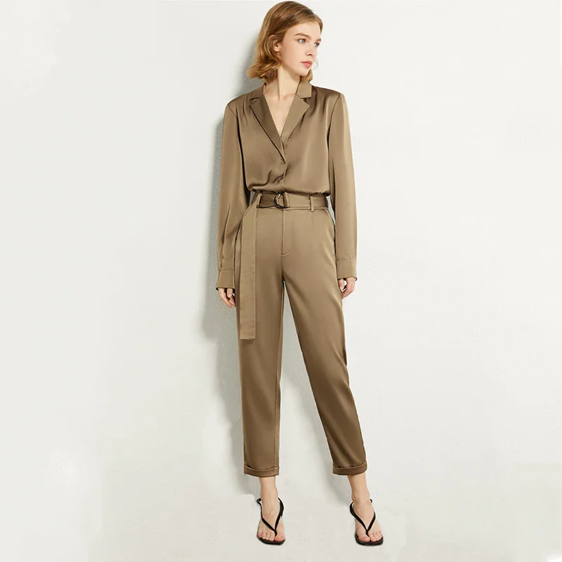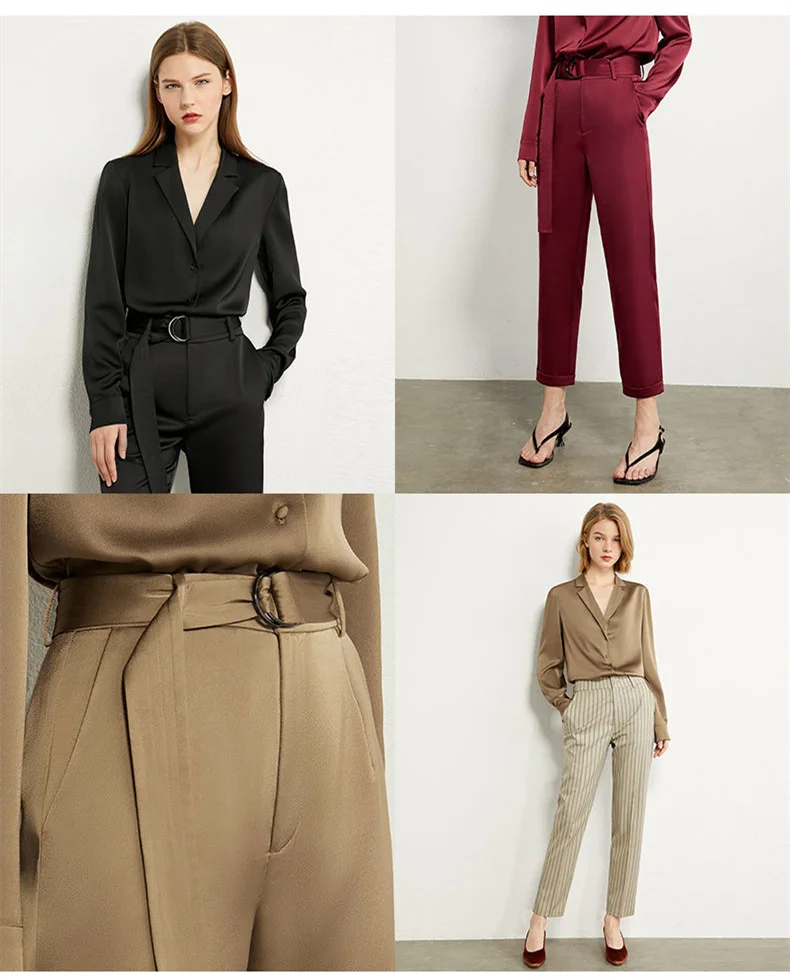 2021 New Autumn Woman Fashion Business Set Office Ladies Suits Women Slim Lapel Loose Chiffon Blouse Long Pants Two Piece Suits