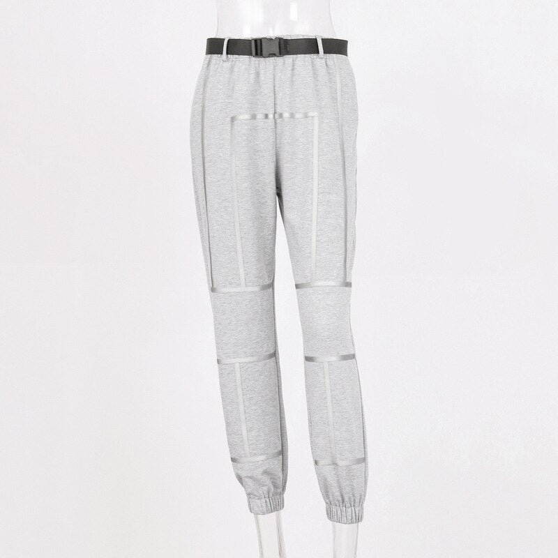 2021 Summer Women's Pants Casual Sports Reflective Striped Sweatpants Loose Lady High Street Cropped Pants