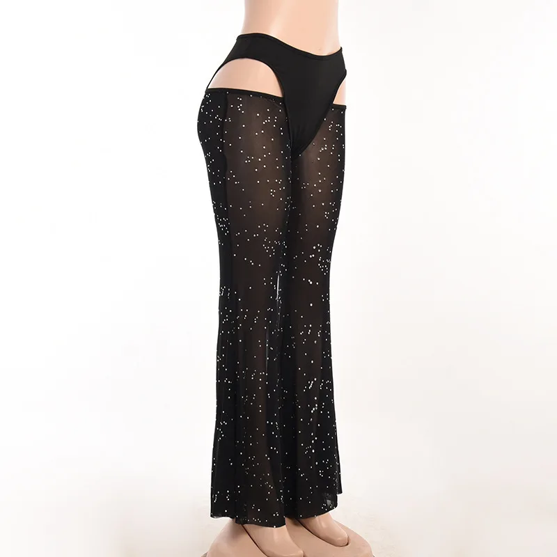 2022 Summer Design High Waist Solid Bright Silk Transparent Skinny Flared Trousers Streetwear Fashion Base Womens Casual Pants