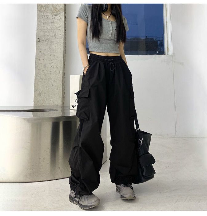 2023 New Women’s Streetwear Cargo Pants y2k Spring Solid Color Women's pants Wide Leg Trouser Female Casual Joggers Sweatpants