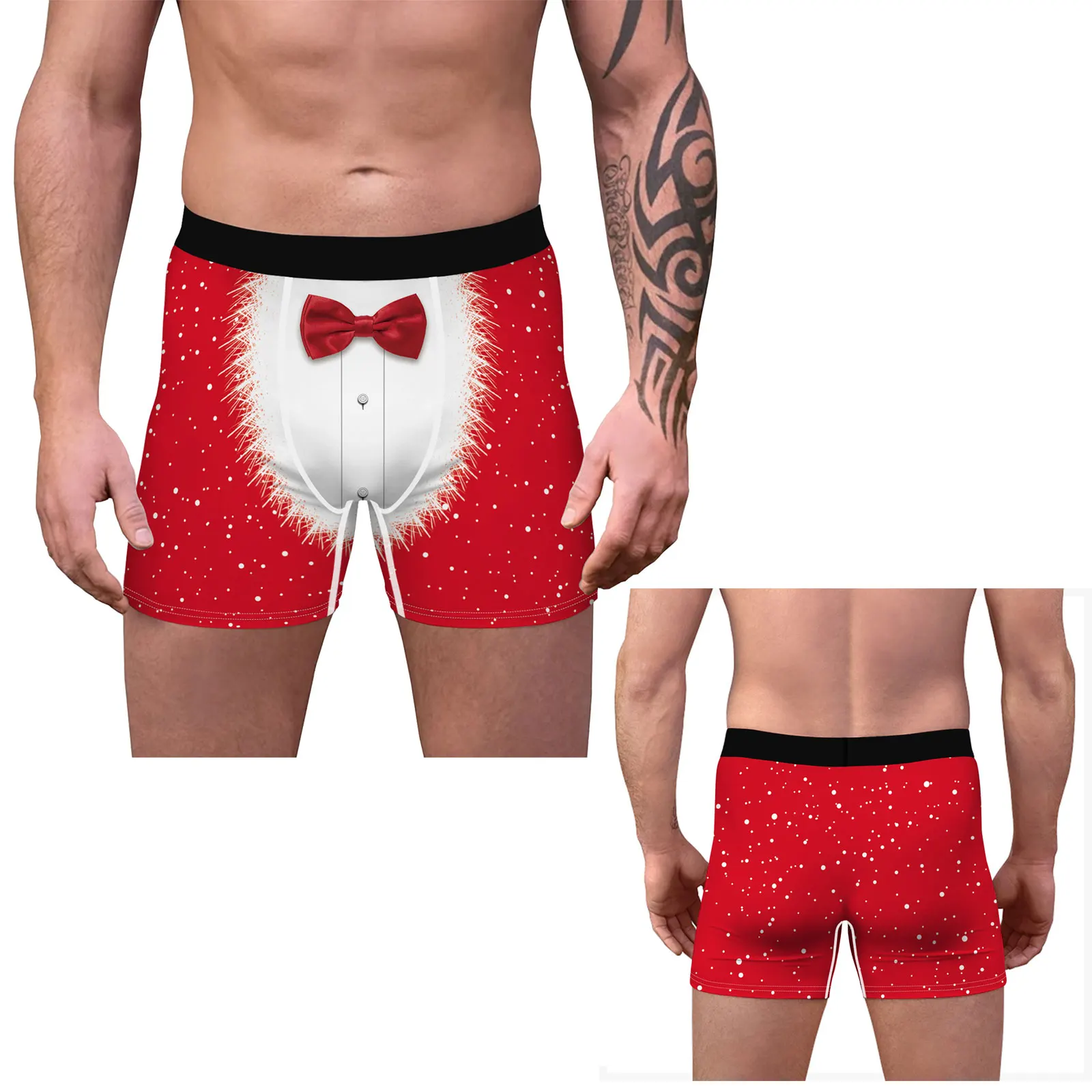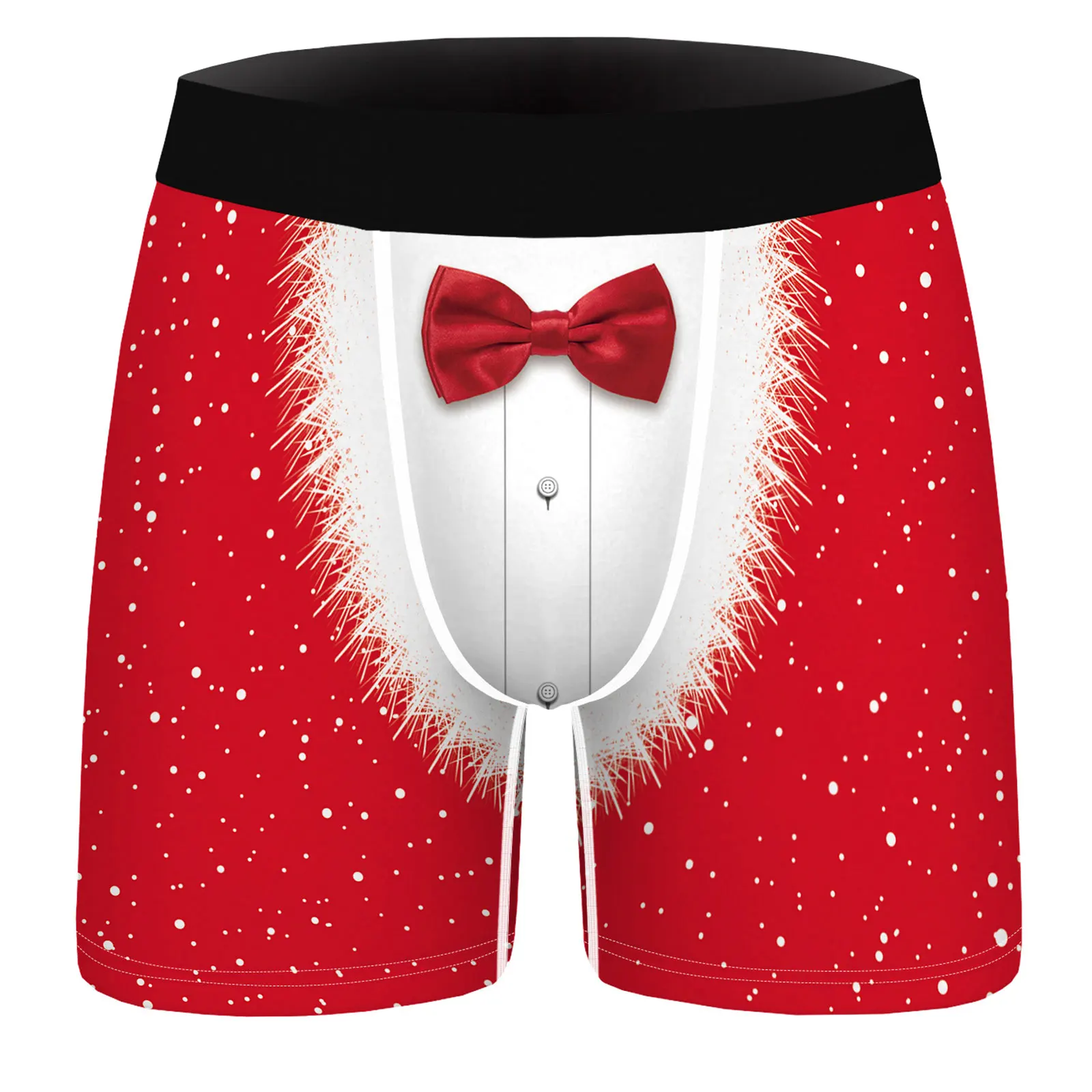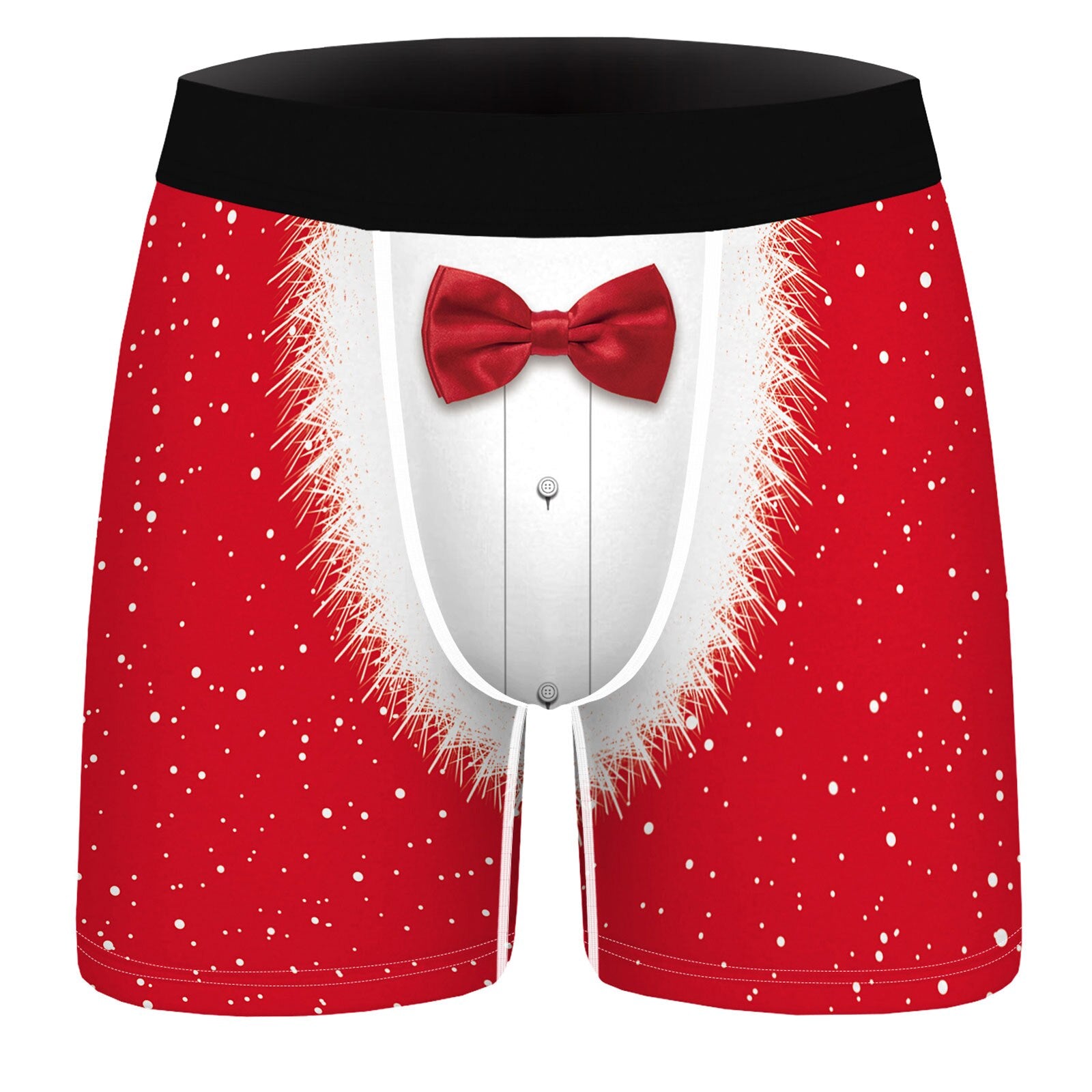 Men Christmas Printed Boxer Briefs Elastic Wide Waistband Underwear Underpants Shorts.