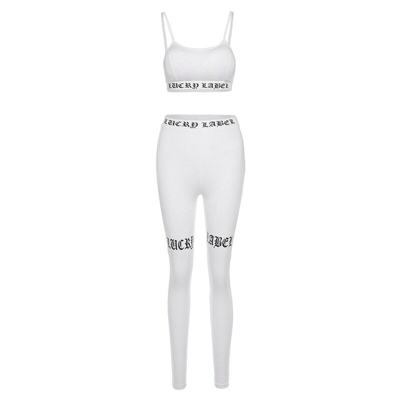 Lace-Up Fitness Suit Female 2021 Summer New Women Black White Printing Letter Crop-Top Elastic Hip-Lifting Sport Long Pants