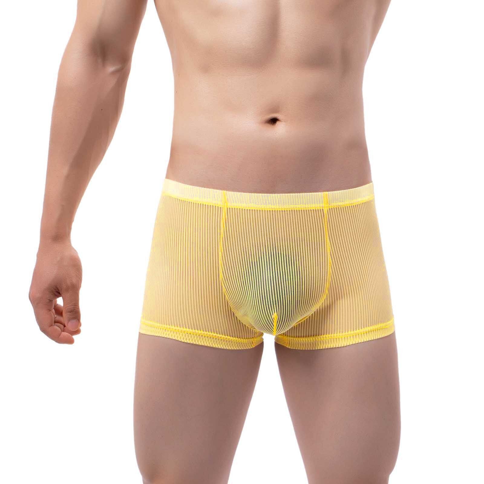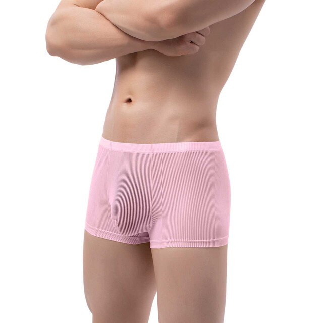 Men Low-Waist Ultra-Thin Transparent Mesh Bulge Pouch Underpants Breathable Cool Summer Ice Silk Underwear