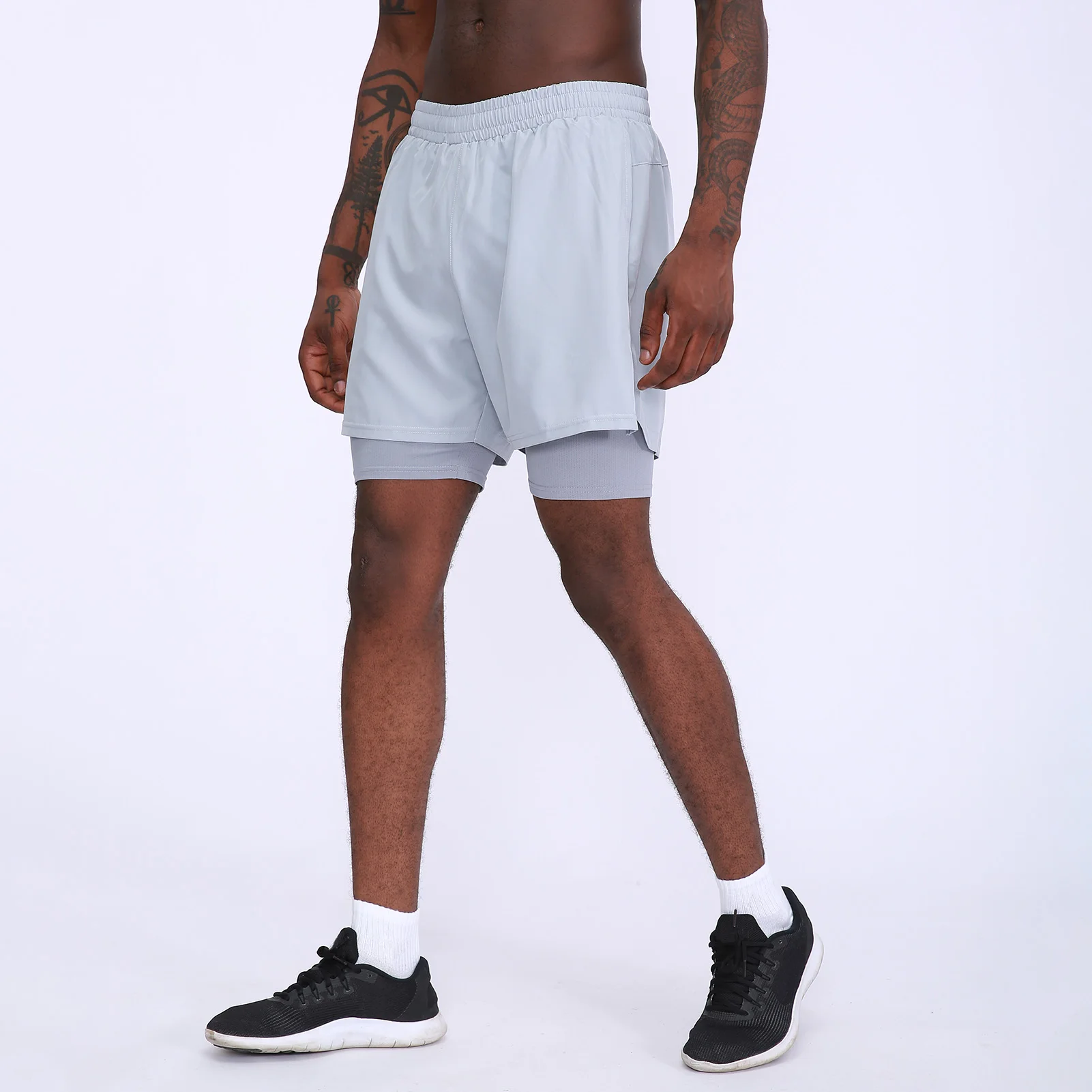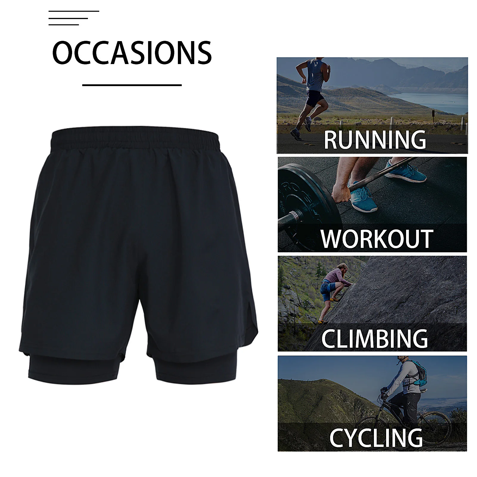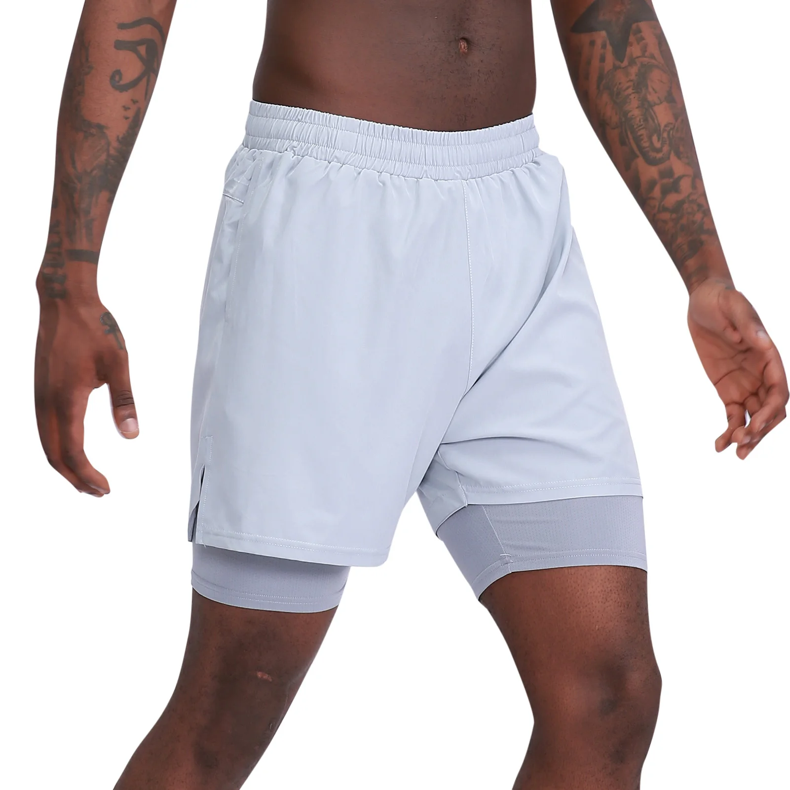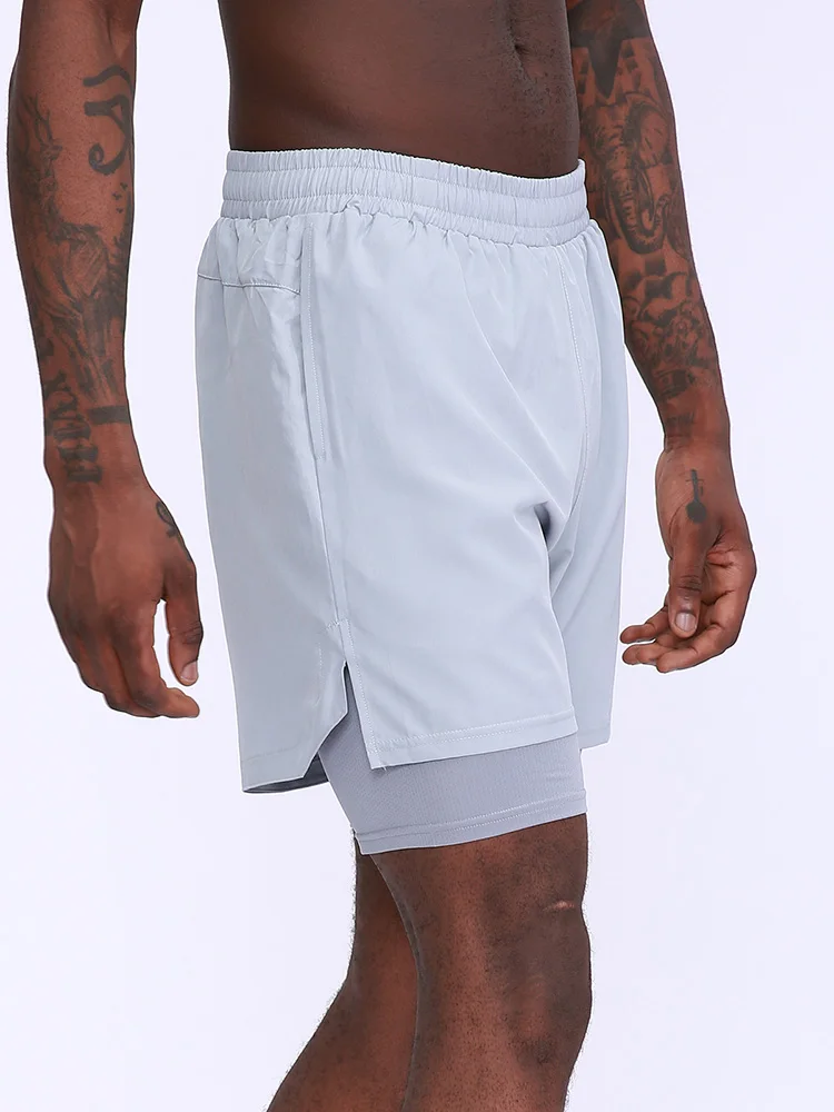 Men's 2 in 1 Sport Shorts Quick-Dry Breathable Pockets Short Pants for Basketball Running Gym Fitness Beach Shorts