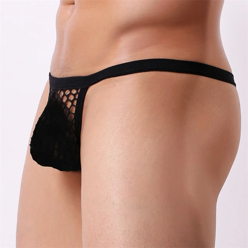 Men's Large Mesh Underwear Fishing Net T-pants String Sexy Temptation U-convex Hollow Mesh T-pants Men Thong Hipster Thongs