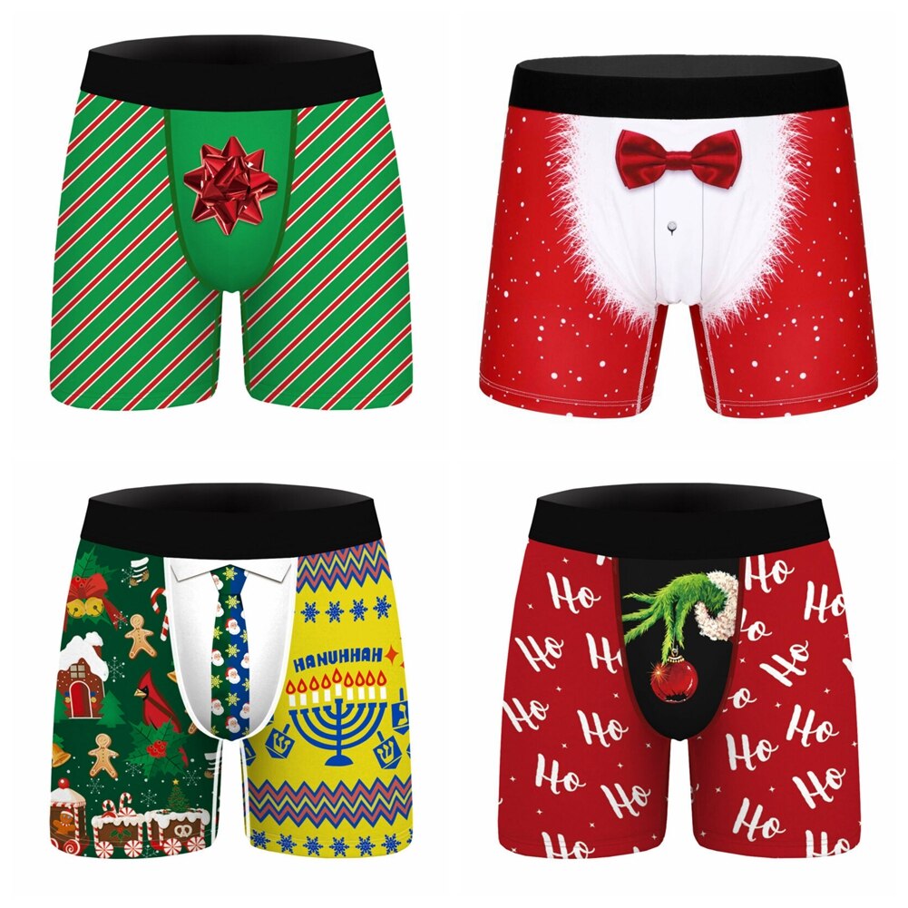 Mens Lingerie Christmas Underwear 3D Printed Pouch Boxer Shorts Underpants Sissy Male New Year Funny Panties Intimates
