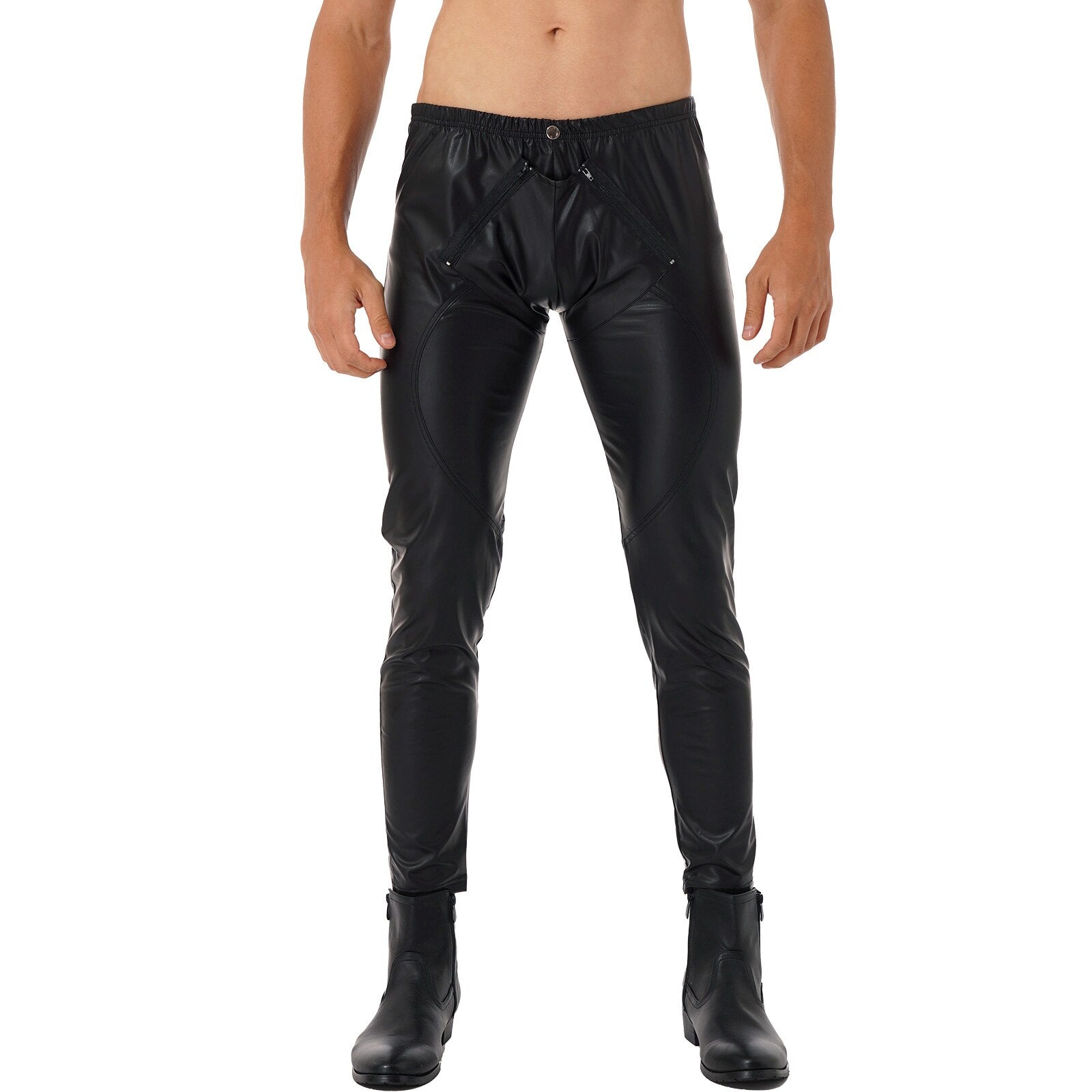 Mens Motor Biker Tight Pants Zipper Front Trousers Skinny Pencil Pants Faux Leather Leggings Leggings Rave Bar Clubwear
