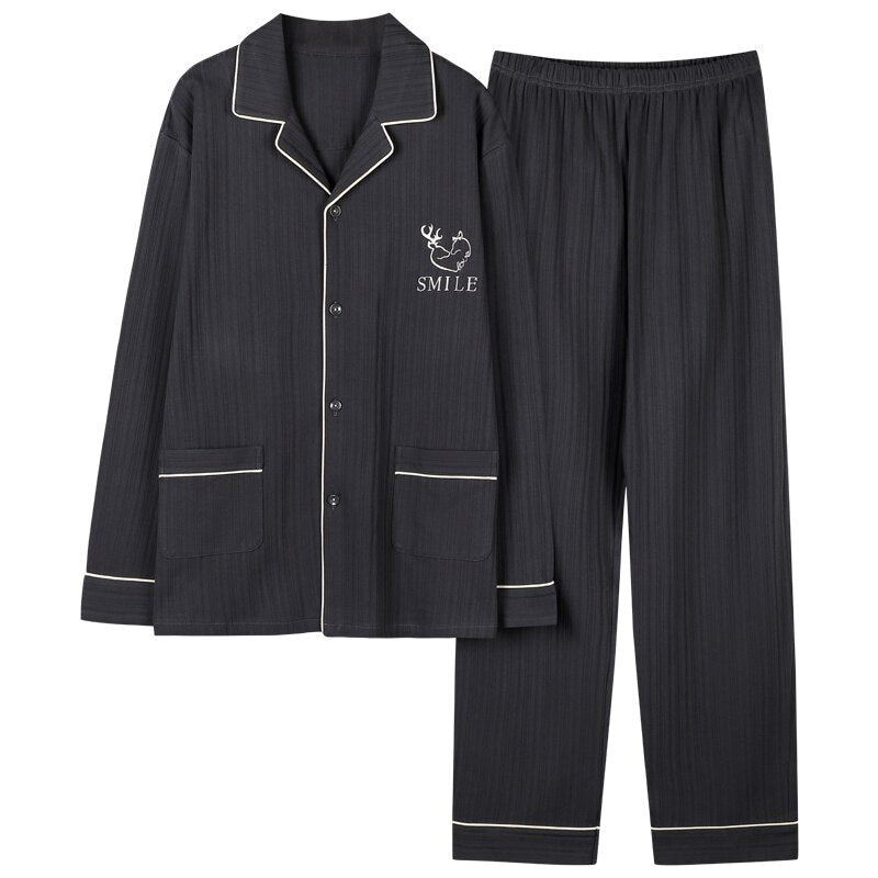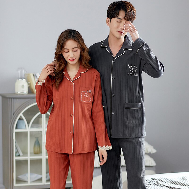 Pocket Printing Cotton Long Sleeve Long Pants Sleepwear Fashion Style Pajamas Set Man and Woman Pijama Set Pj Set Spring Autumn