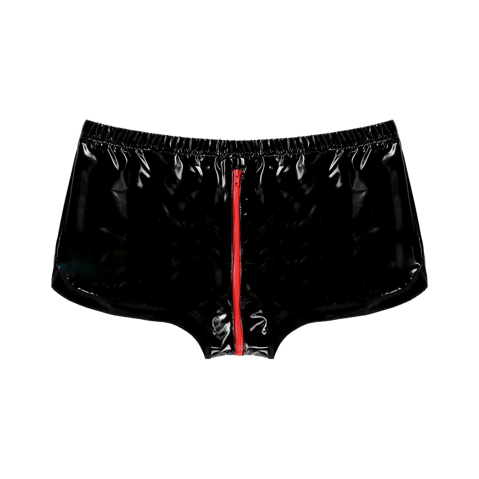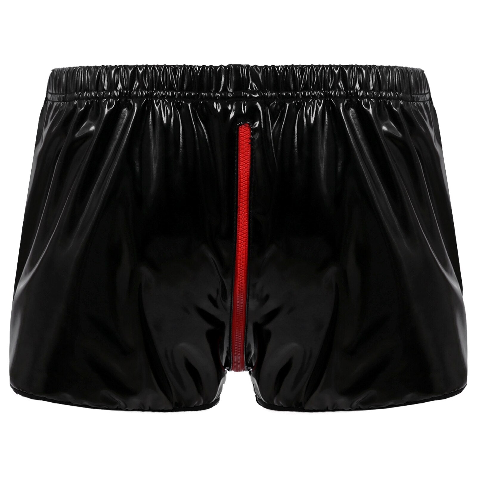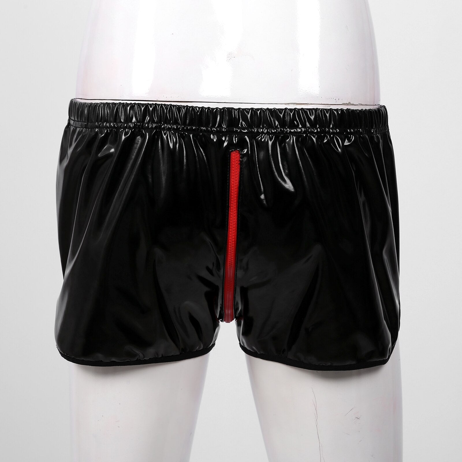 Sexy Men Boxer Mens Wetlook Leather Underwear Underpants Zipper Crotch Penis Pouch PU Boxers Home Soft Boxershorts Male Panties