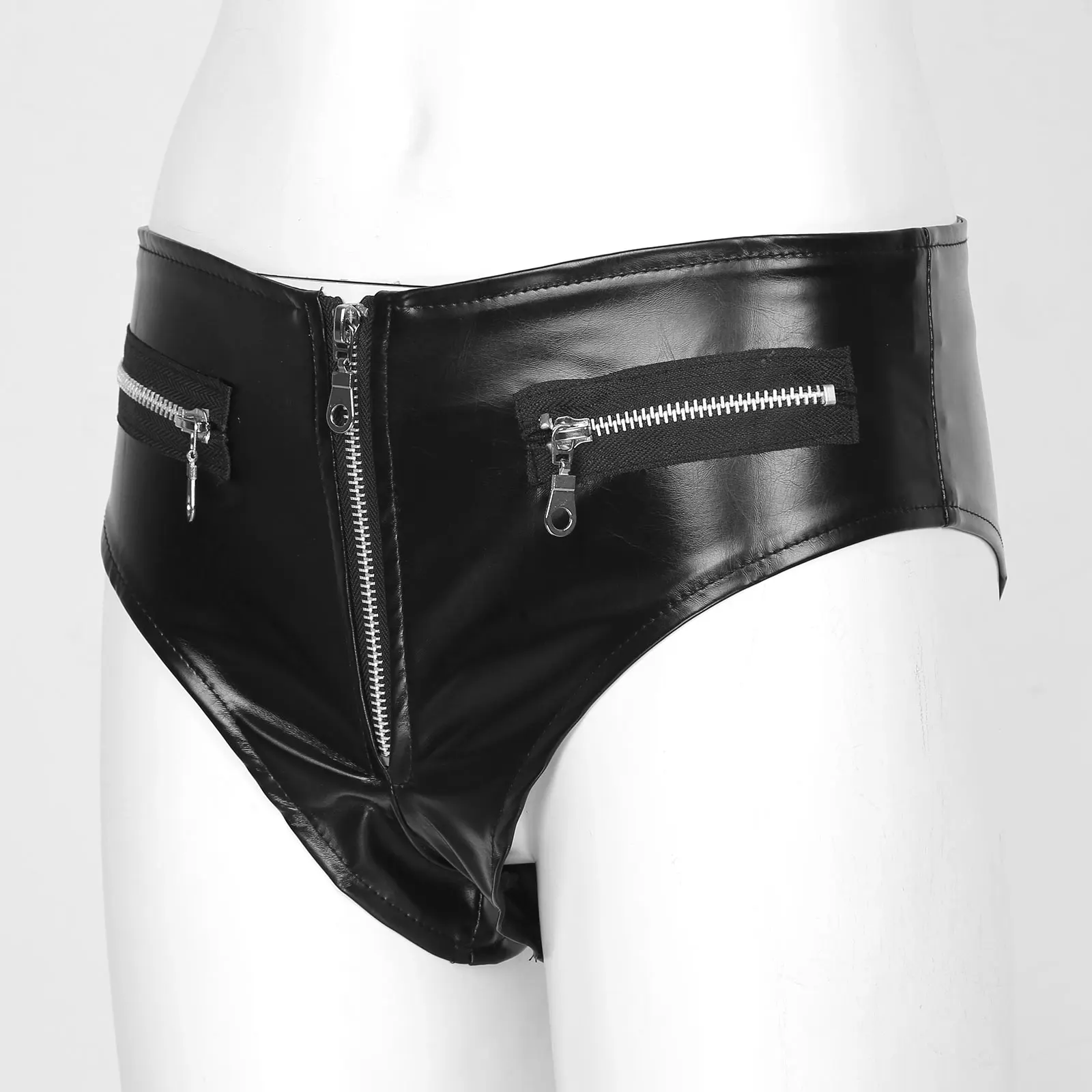 Women Patent Leather Zipper Closure Wet Look Booty Shorts Low Waist Hot Pants.
