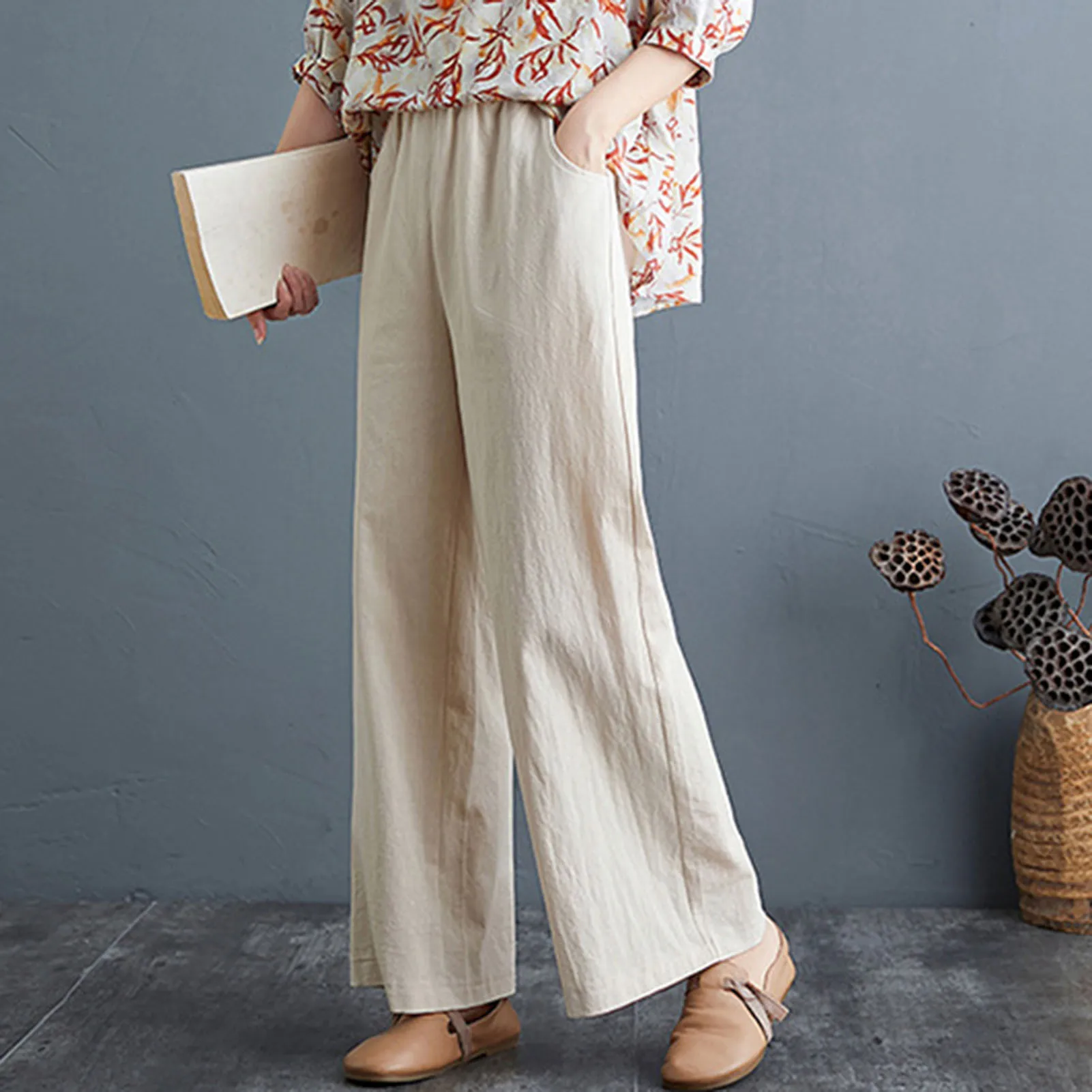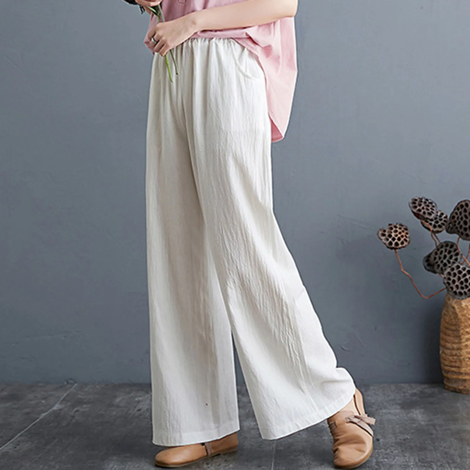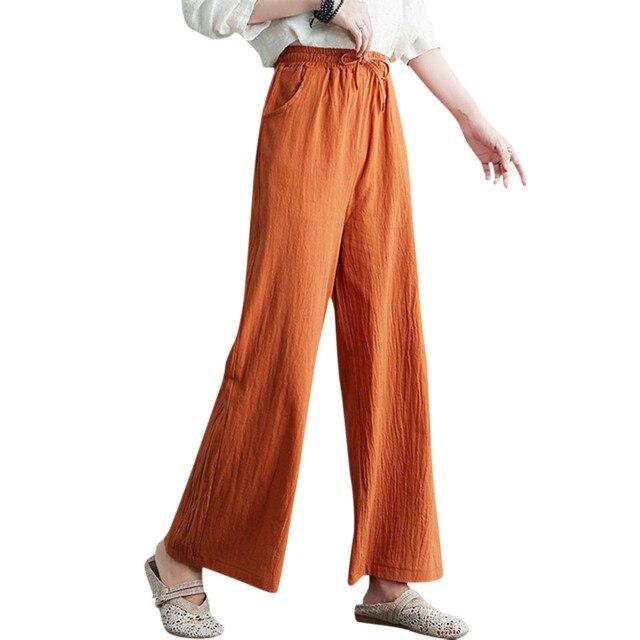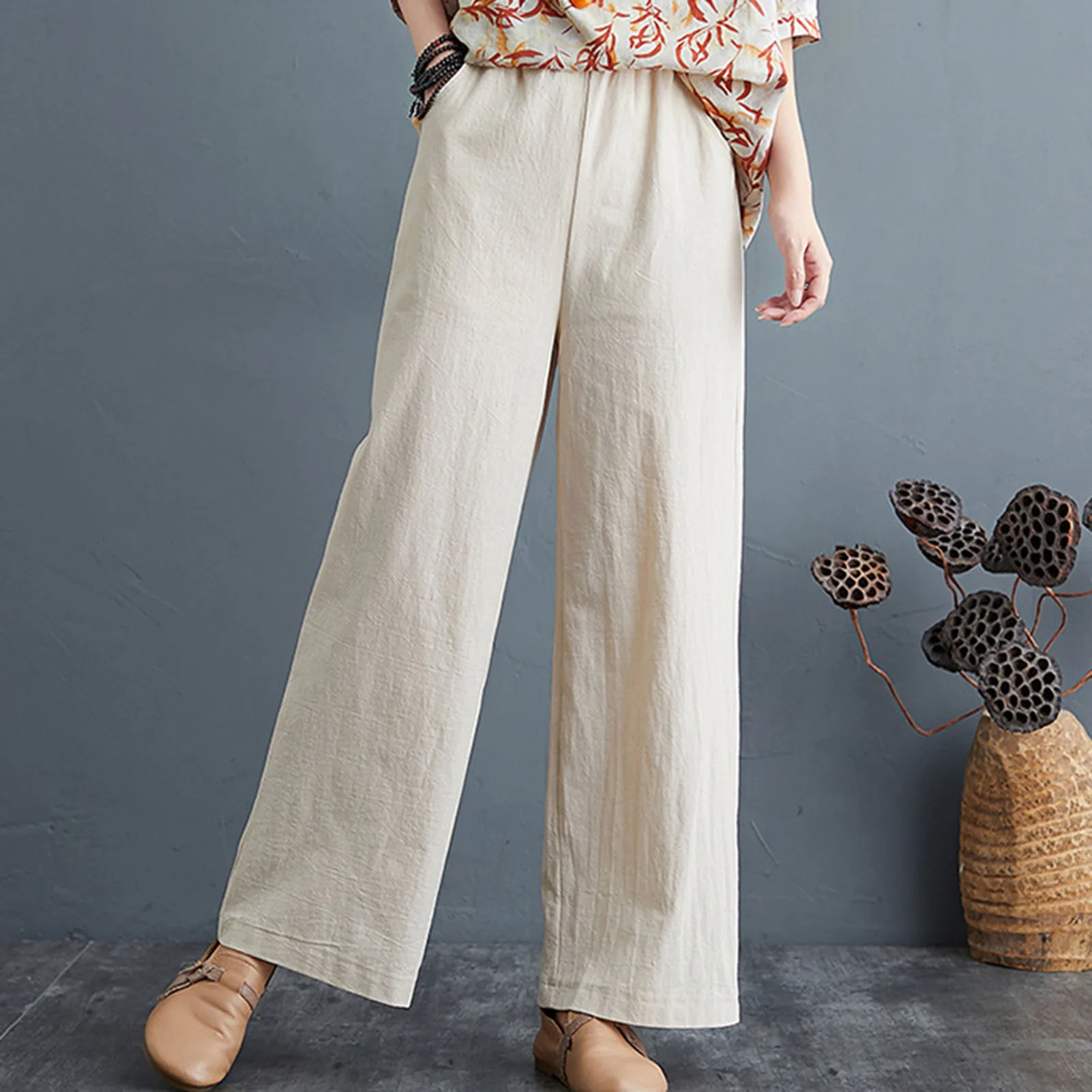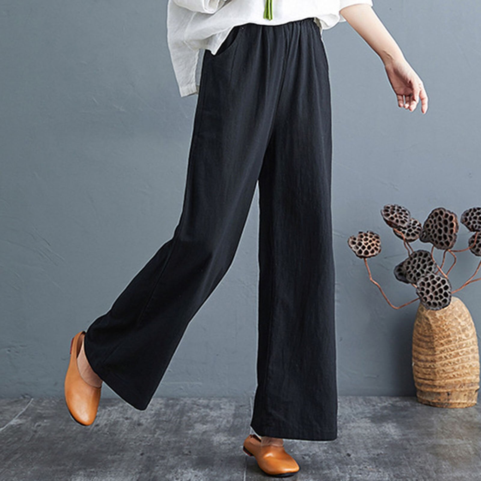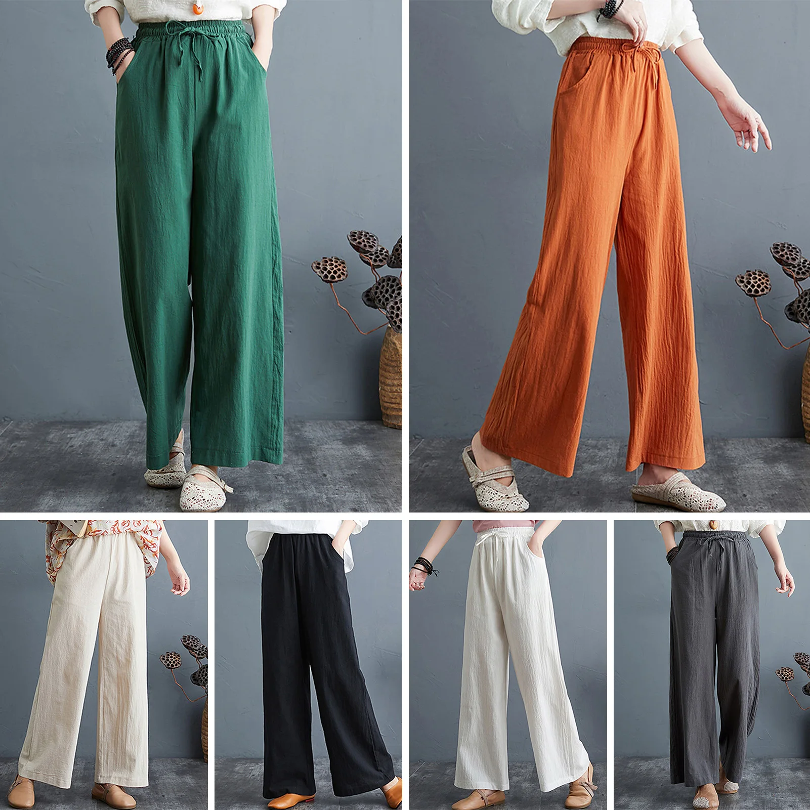 Wide leg long pants in solid color are crafted from cotton and linen fabric, soft and skin-friendly, comfortable and breathable to wear. Slant pockets and elastic waist bring a better wearing experience.