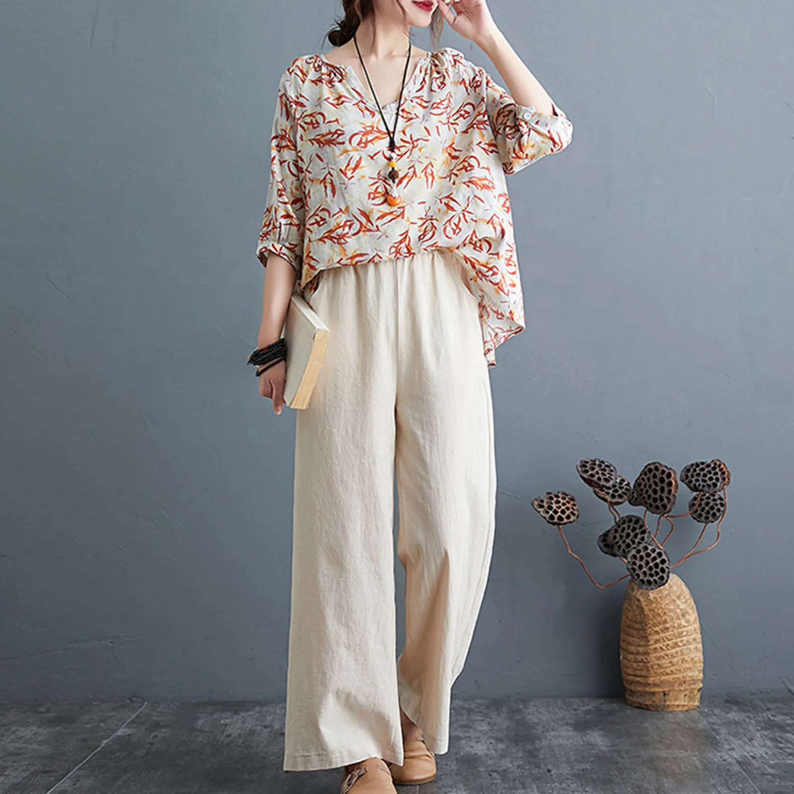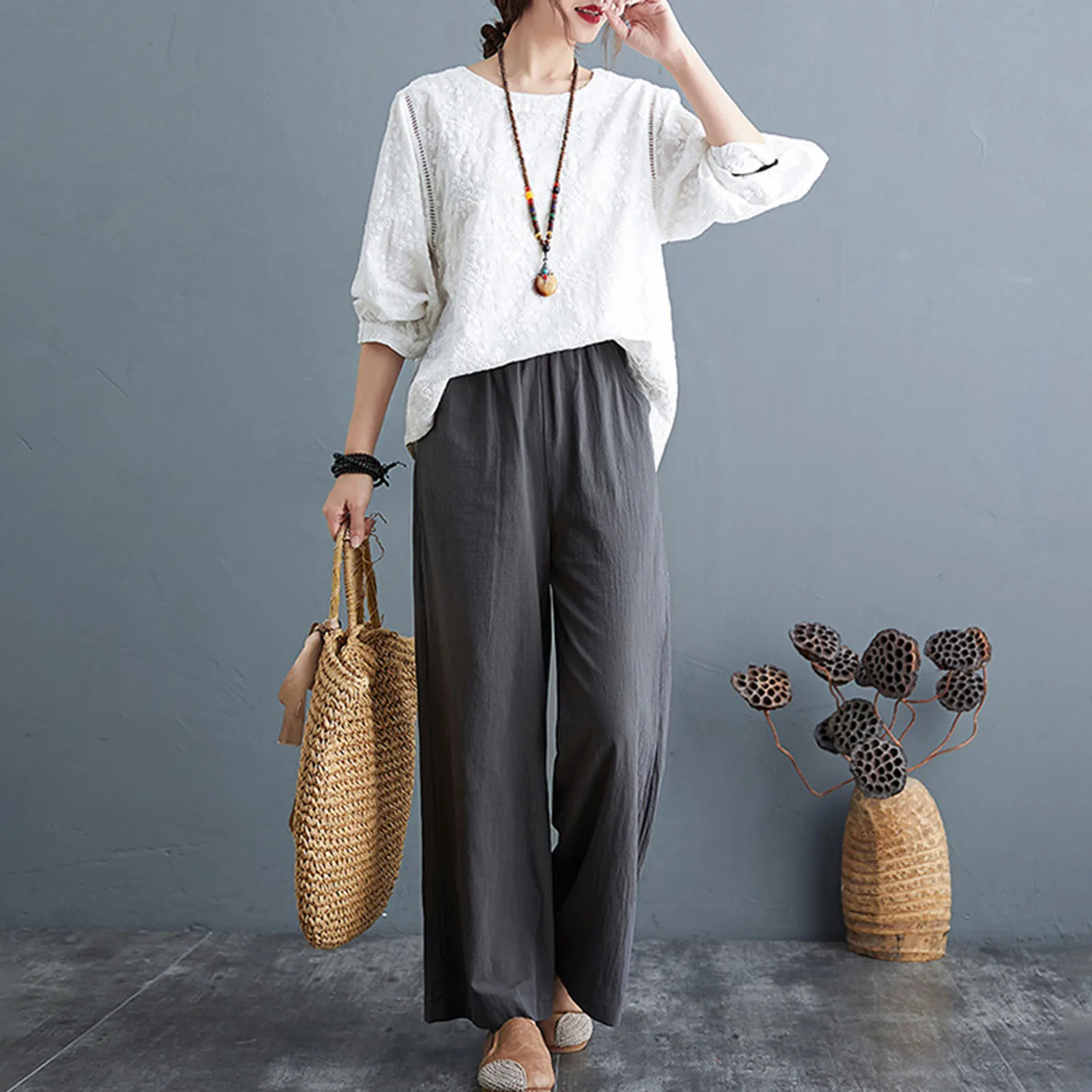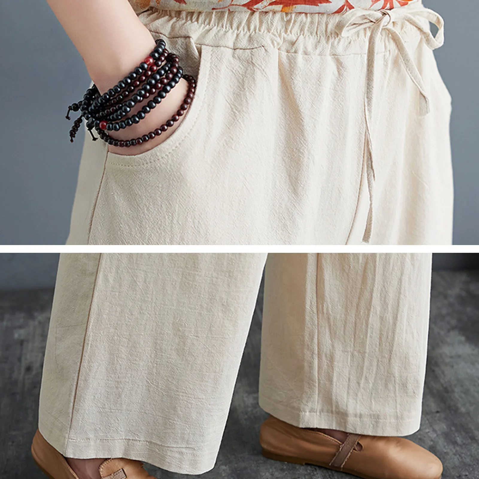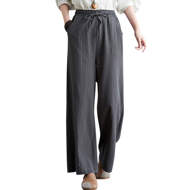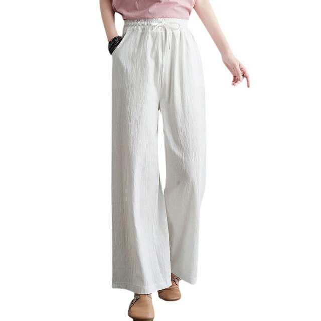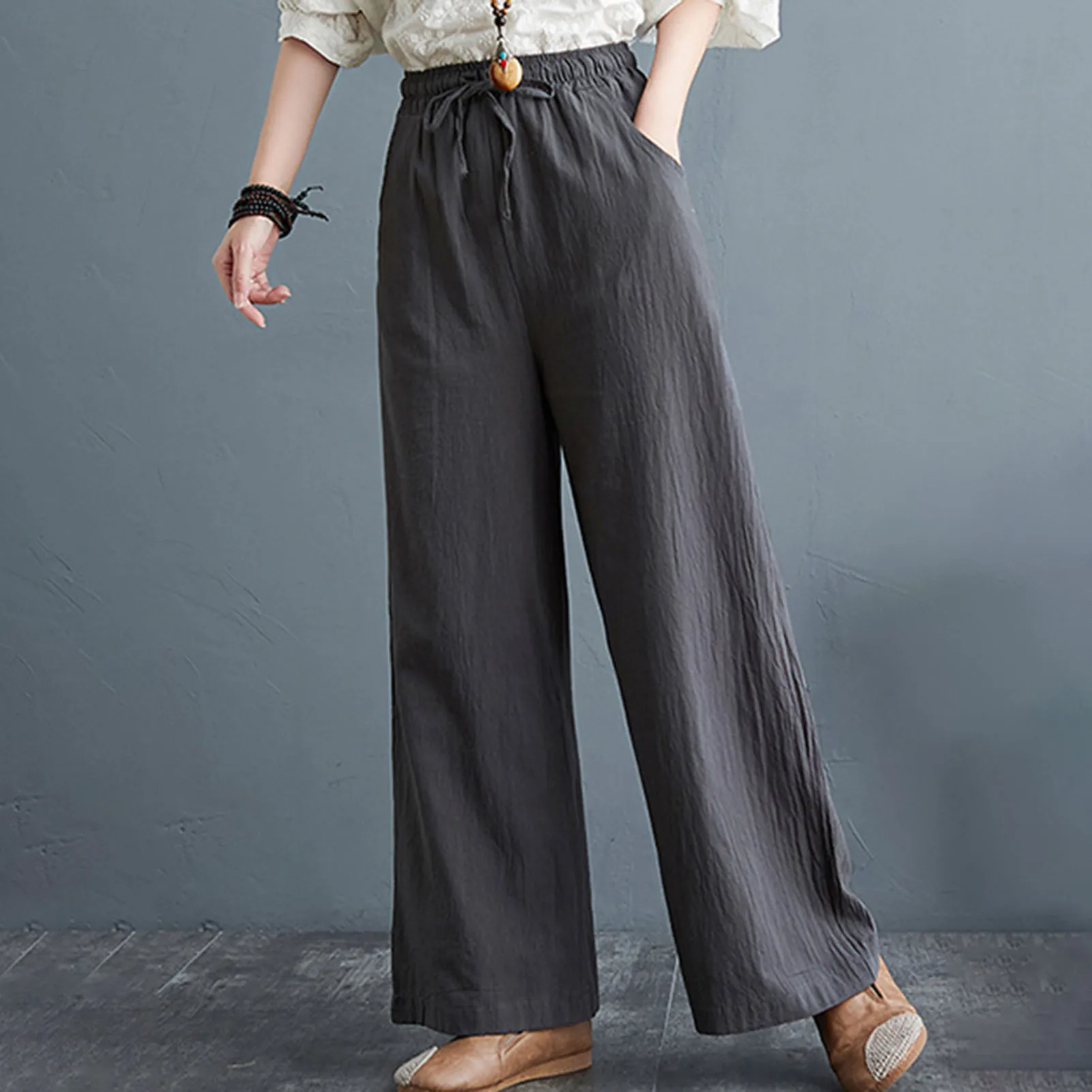 Wide leg long pants in solid color are crafted from cotton and linen fabric, soft and skin-friendly, comfortable and breathable to wear. Slant pockets and elastic waist bring a better wearing experience.