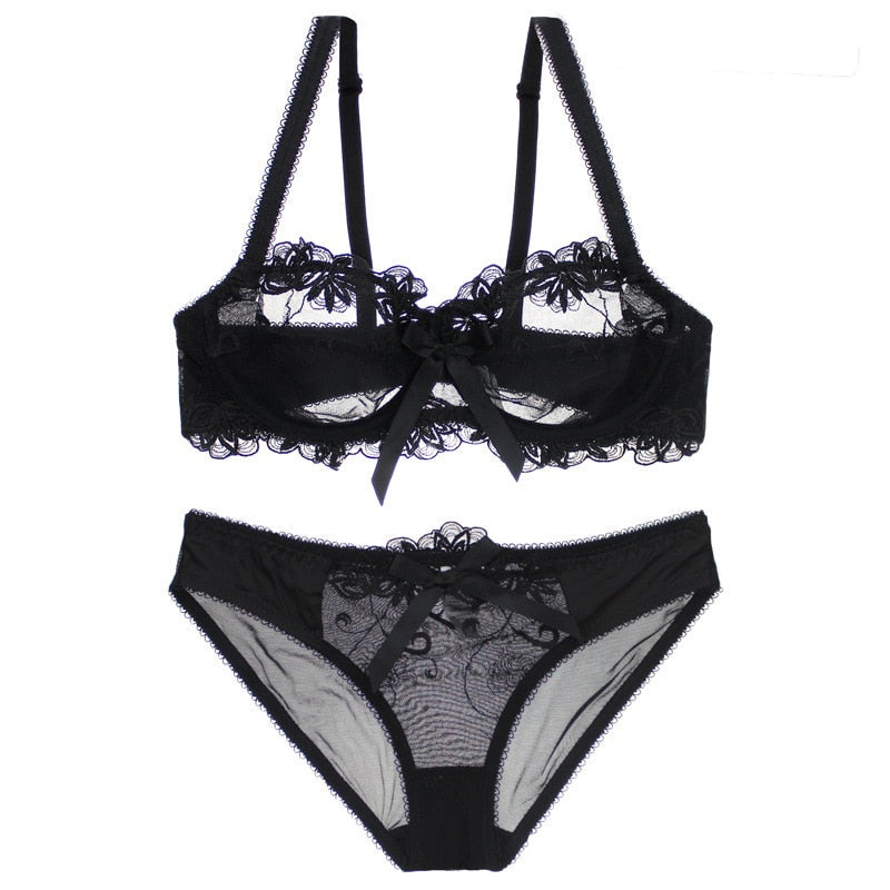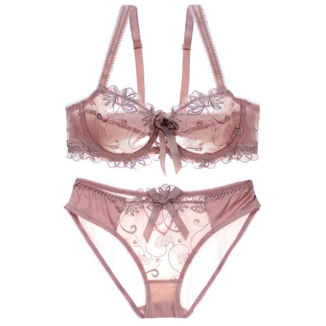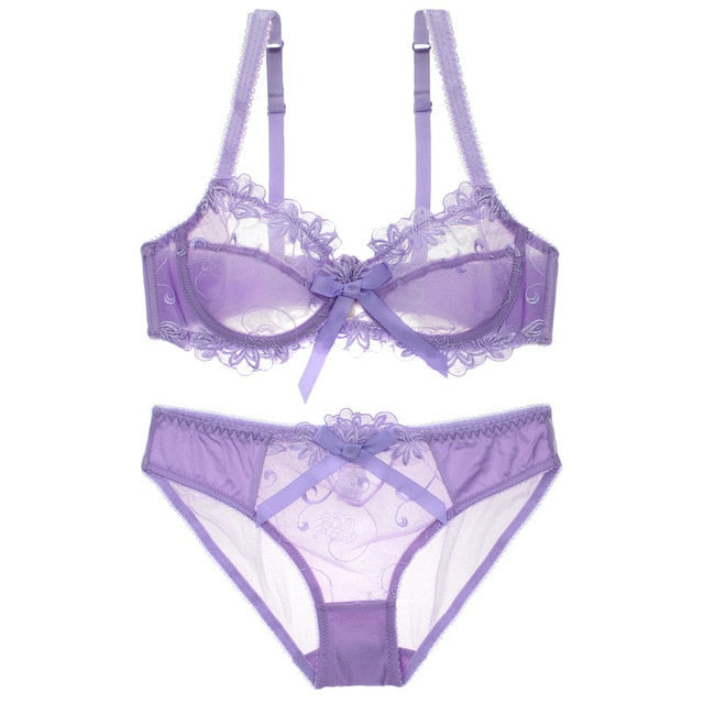 summer Women's underwear thin sexy net yarn woman embroidery Transparent lace bra and pants sets