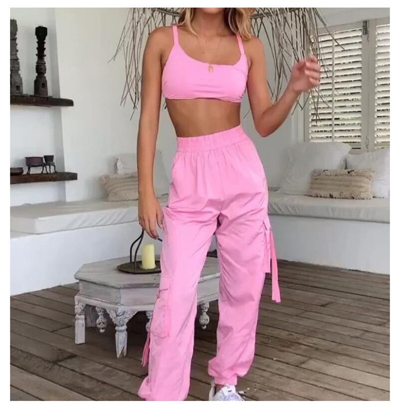 Two Piece Set Women Tracksuit Backless Strap Crop Top + Cargo Pants Jogger Suits Summer Clothes Streetwear Matching Sets Outfits 100% brand new and high quality. No trace of the Enjoyment Style:Fashion,Comfortable Color:show as pictures