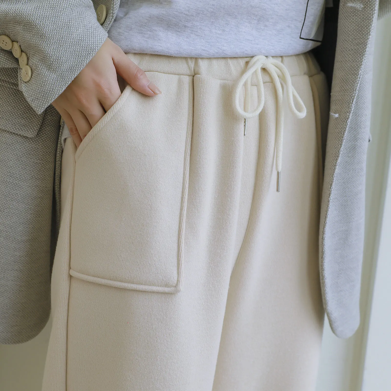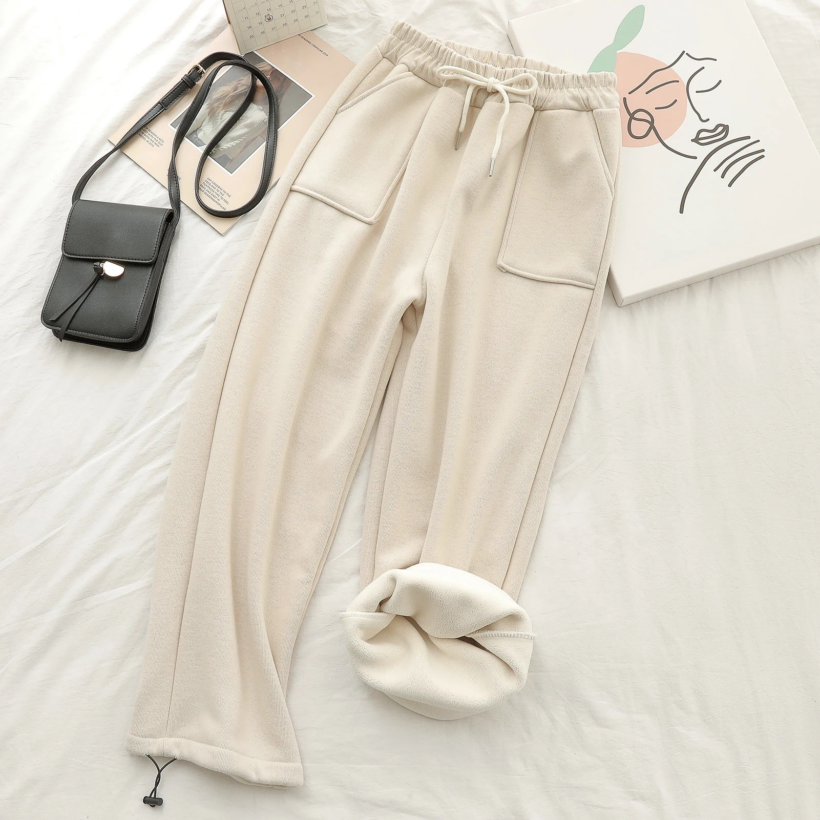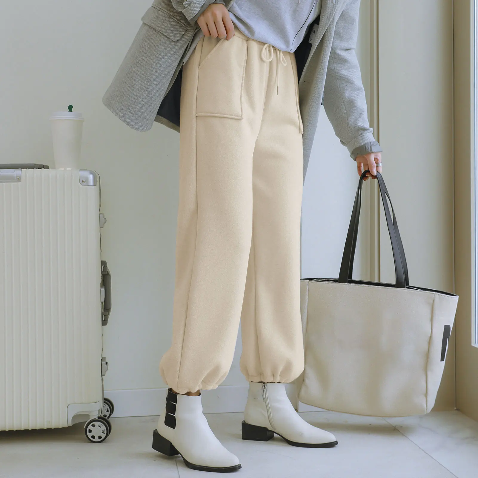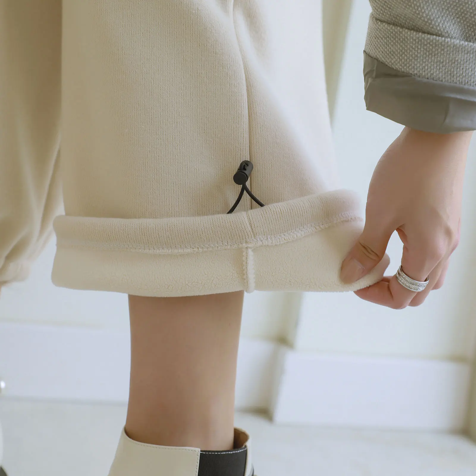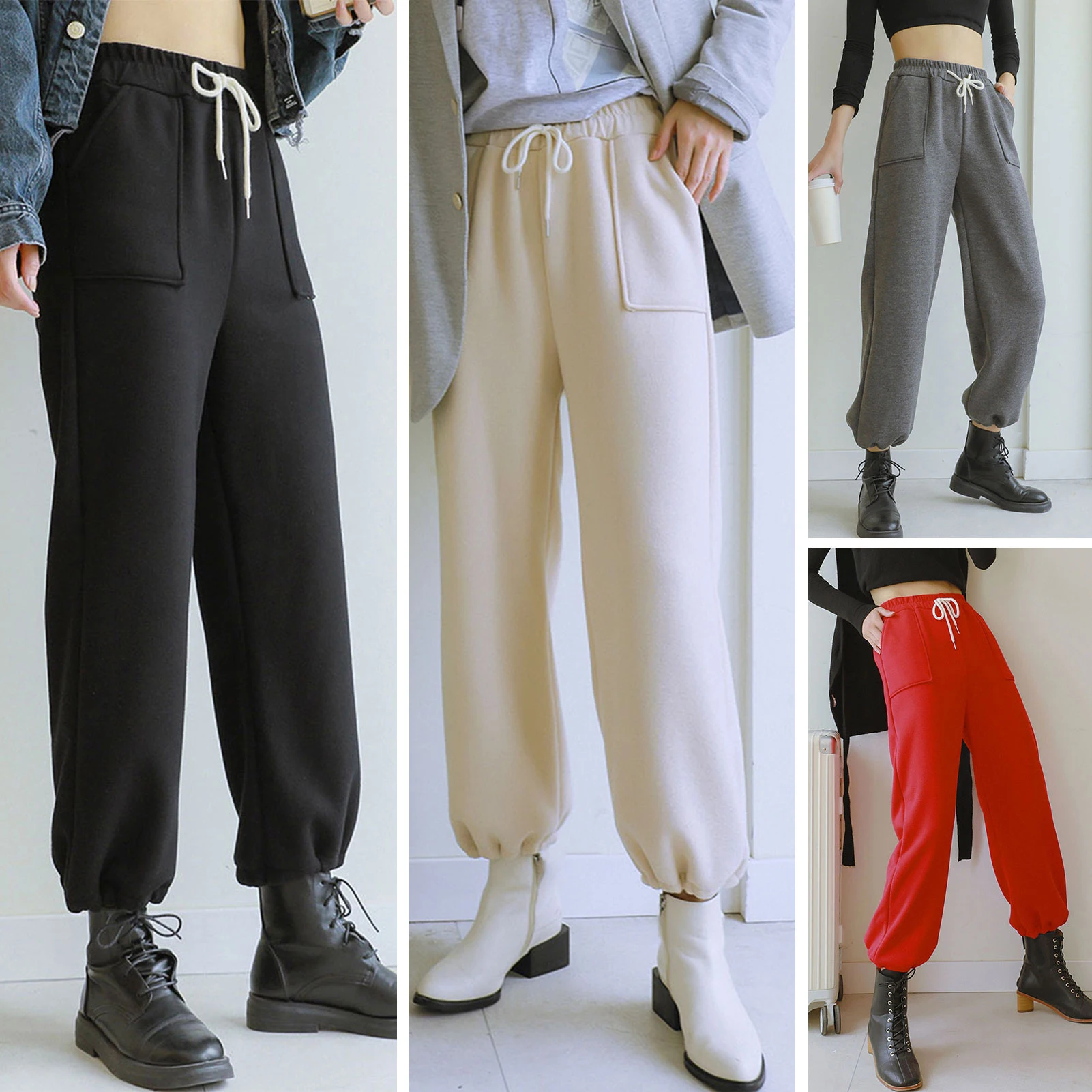 This winter pants with knitting finishing and fleece inside is warm and comfortable to wear. It features loose fit, high waist with drawstring, elastic hem, pockets and warm fleece inside. Just put these practical and chic pants on for a warm and cool winter time.