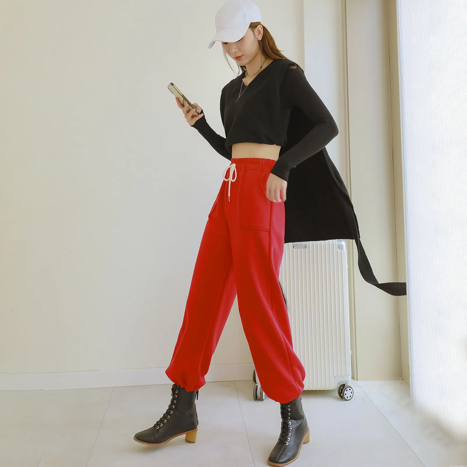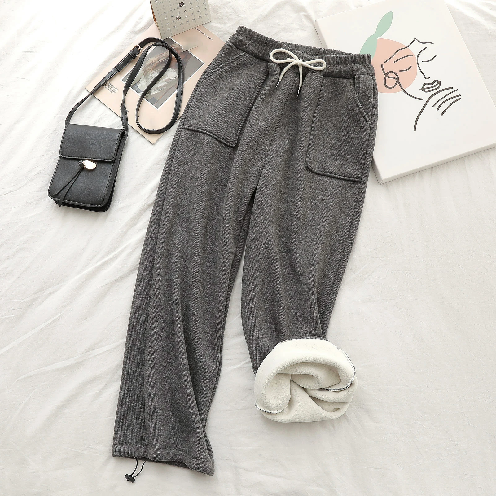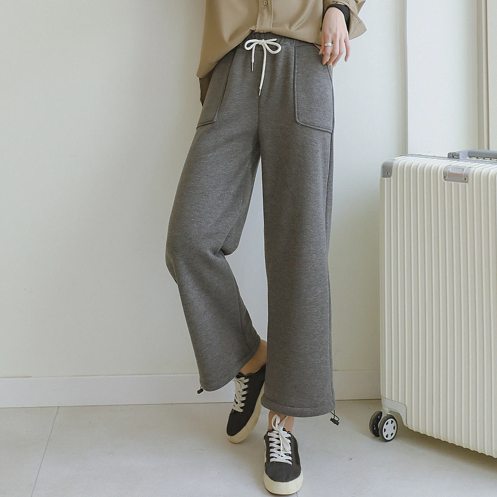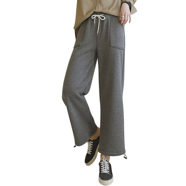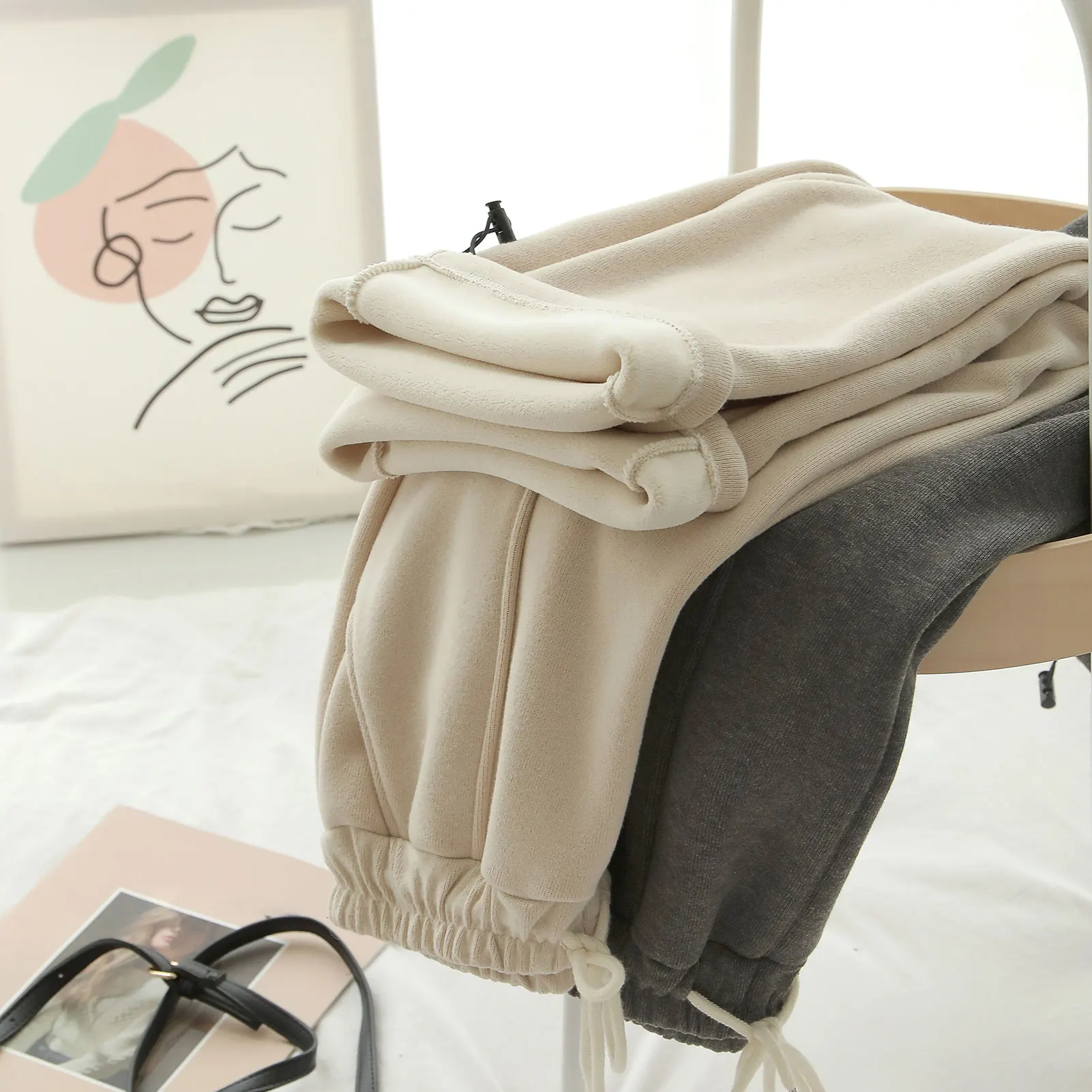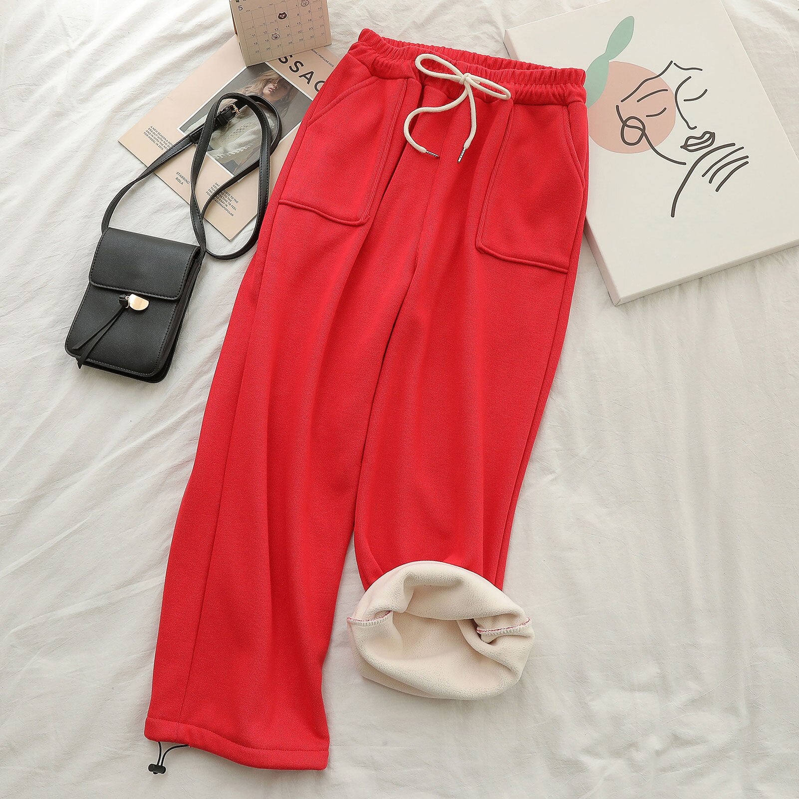This winter pants with knitting finishing and fleece inside is warm and comfortable to wear. It features loose fit, high waist with drawstring, elastic hem, pockets and warm fleece inside. Just put these practical and chic pants on for a warm and cool winter time.