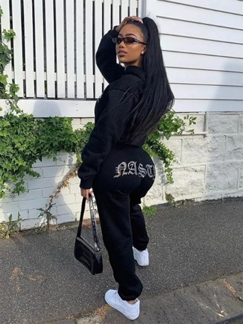 Women's High Waist Two Piece Set Winter Velvet Hoodies 2021 Autumn Jogging Sport Loose Thick Sweatpants y2k Tracksuit Femme