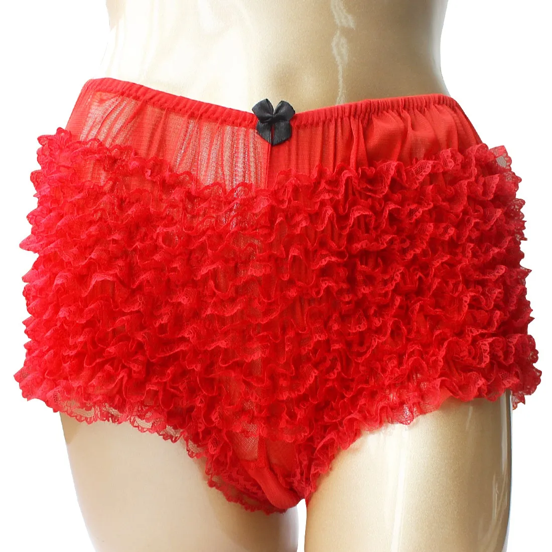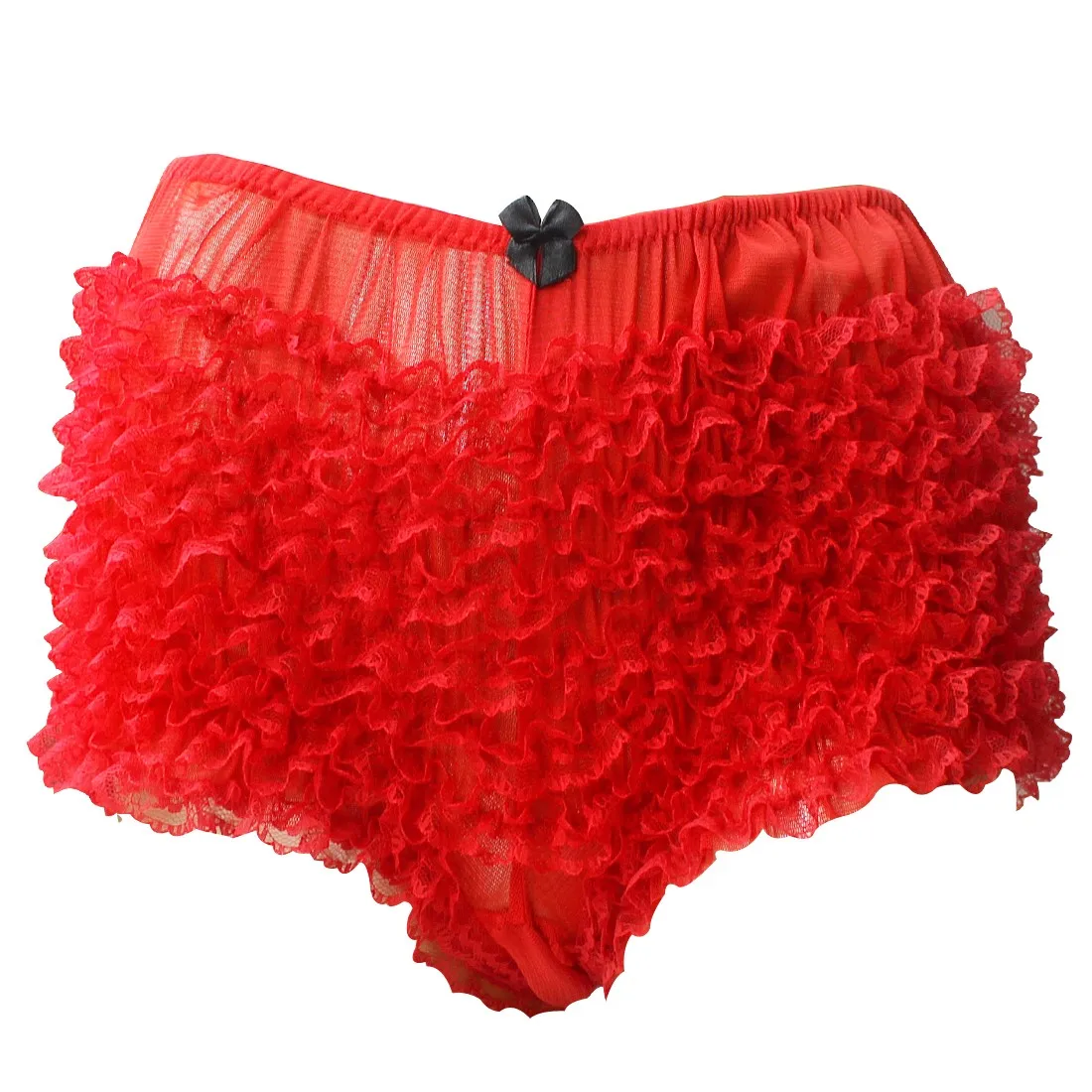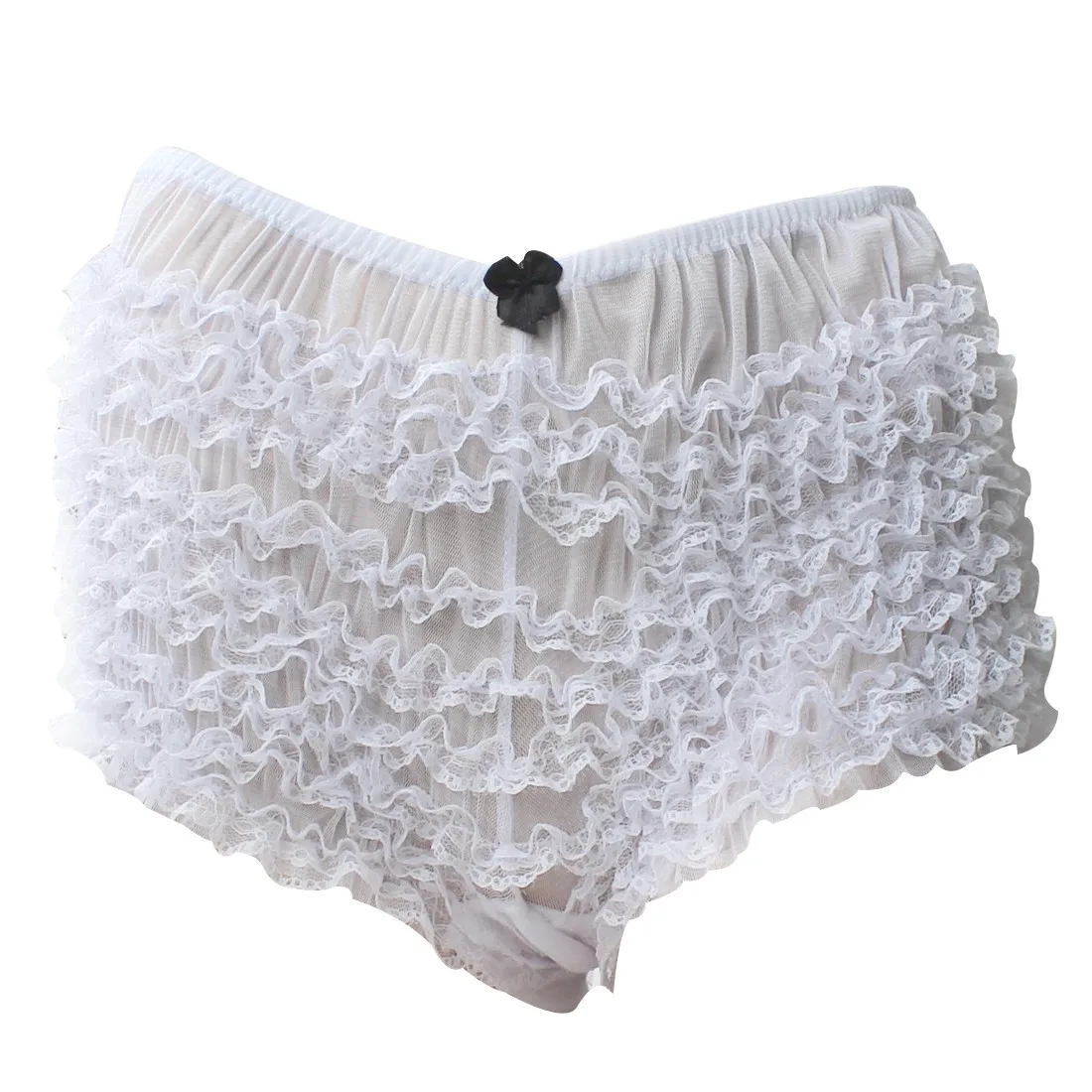 Women Ladies Lingerie Layered Ruffled Lace Trim Bloomers Knickers with a bow Sexy Panties Women's Underwear Underpants
