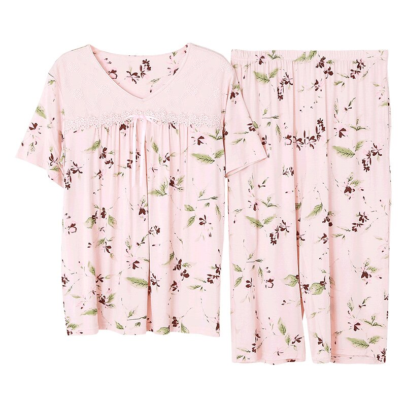 Women Nightwear Loose Home Wear Summer New 2PCS Shirt&Pants Home Clothes Female Flower Pajamas Set Cotton Modal Sleepwear M-XXXL
