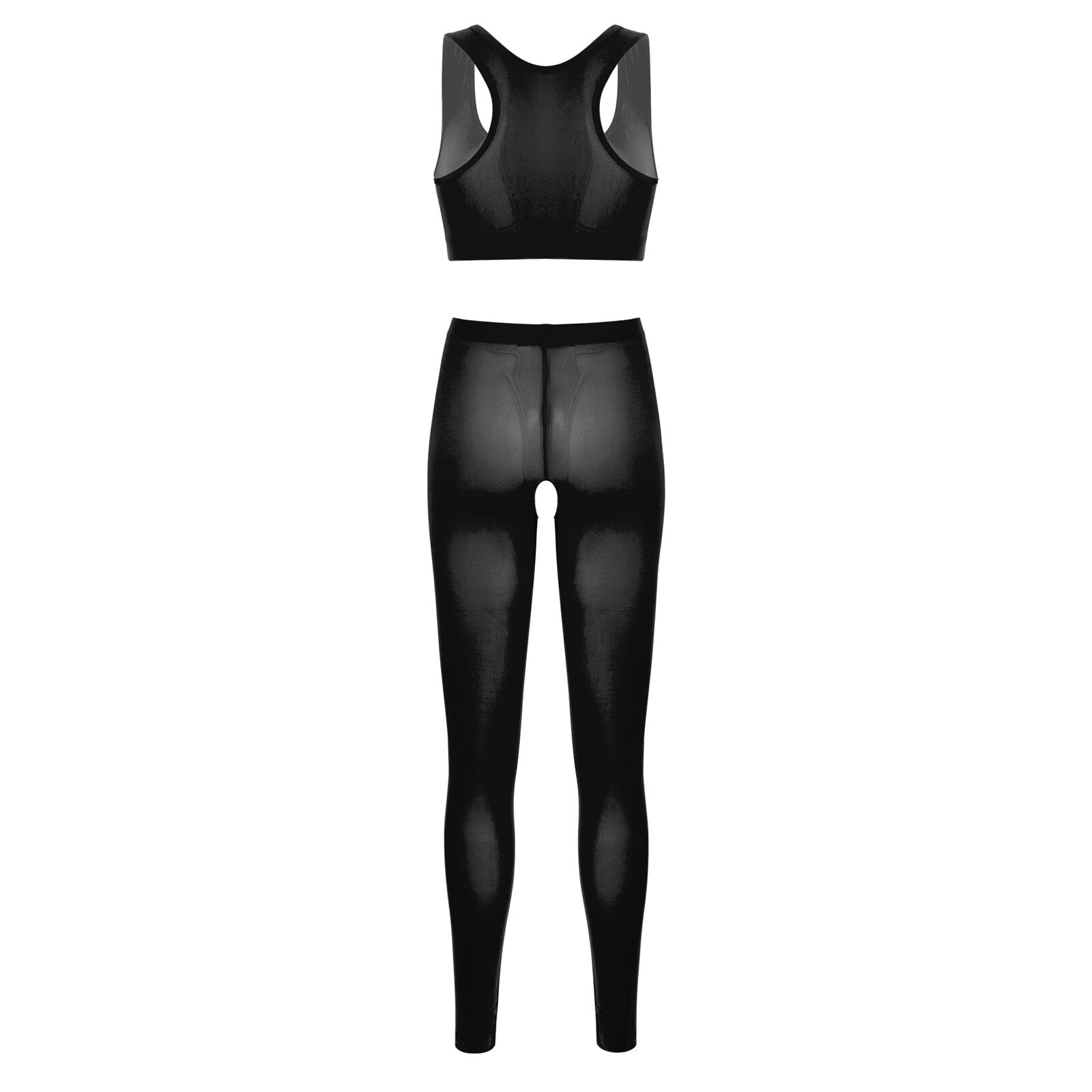 Women See-through Lingerie Suit U Neck Racer Back Vest and High Waist Open Crotch Pants Set.