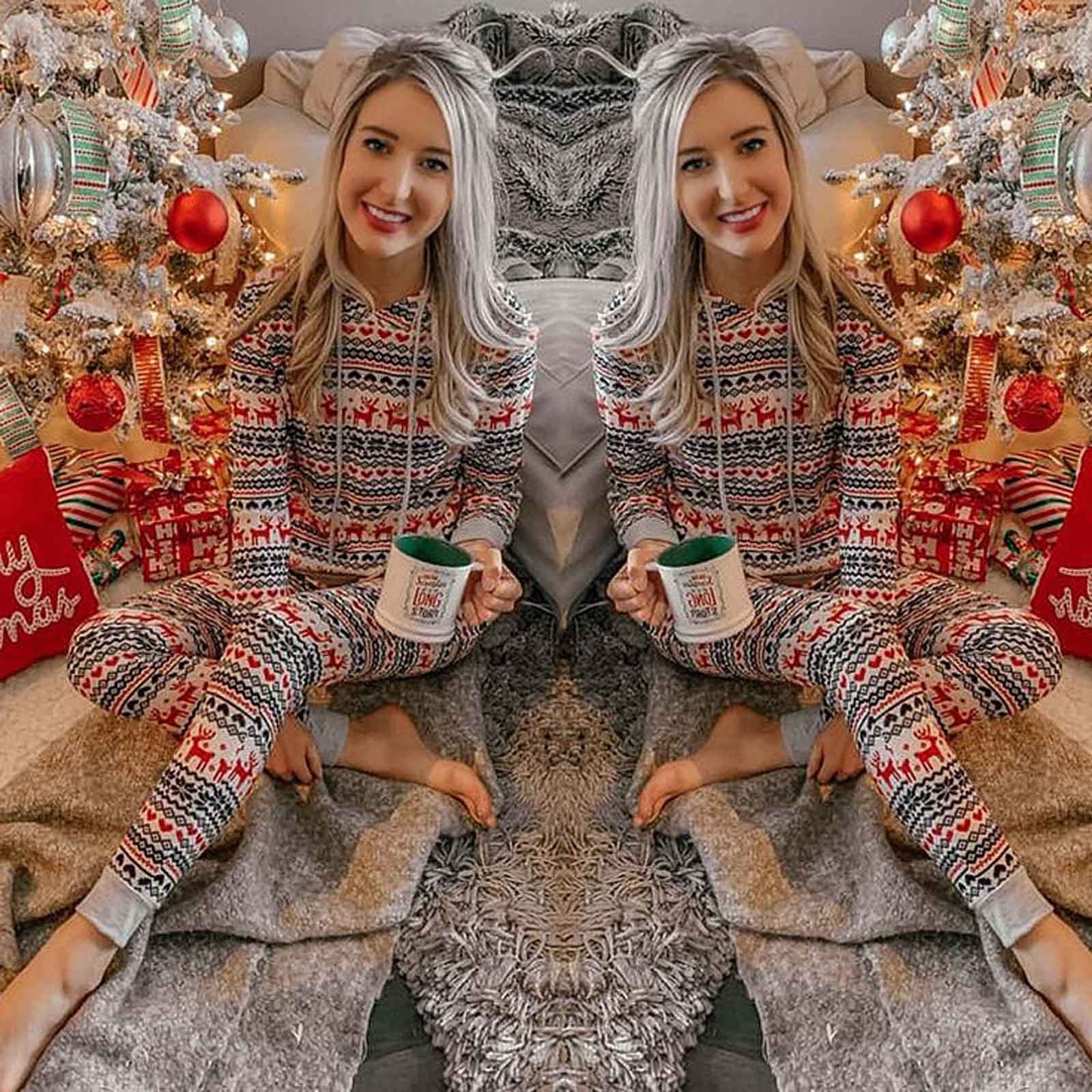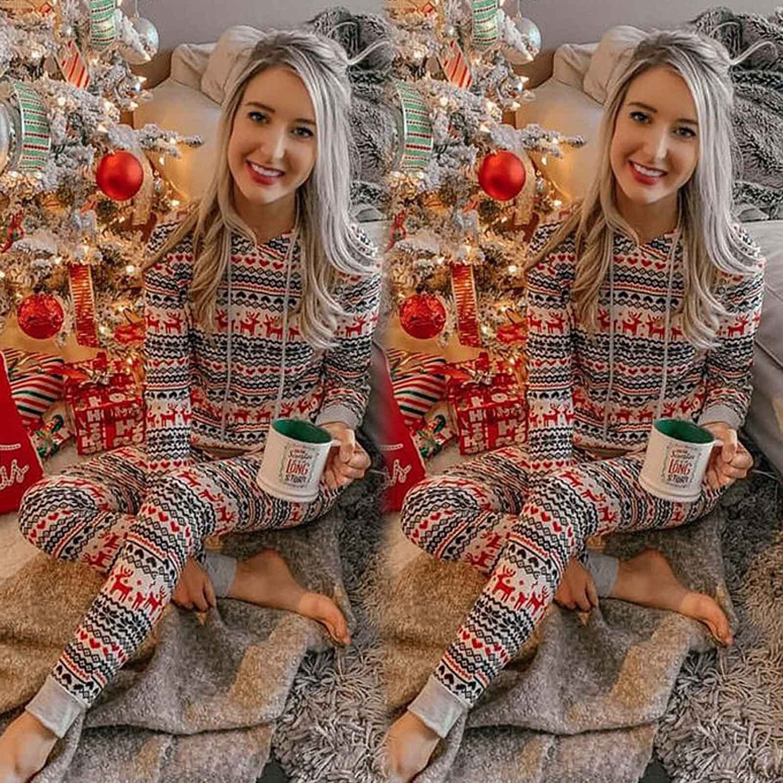 Women Winter Christmas Printed Pajama Sets Full Sleeve Suit Fashion Family Adult New Year Clothes Top Pants Xmas Sleepwear