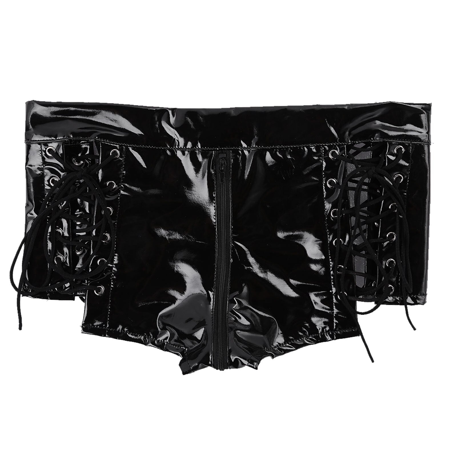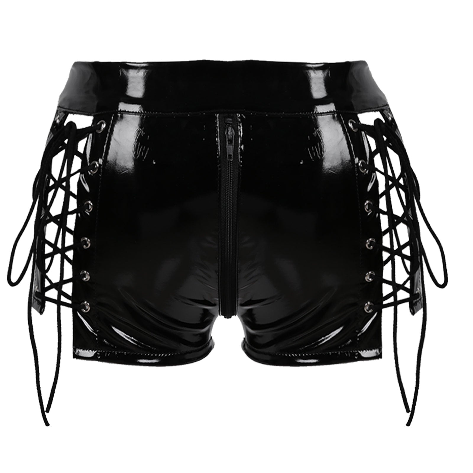 Women’s wet look patent leather mini shorts hot pants, good stretchy fabric, slim cut.