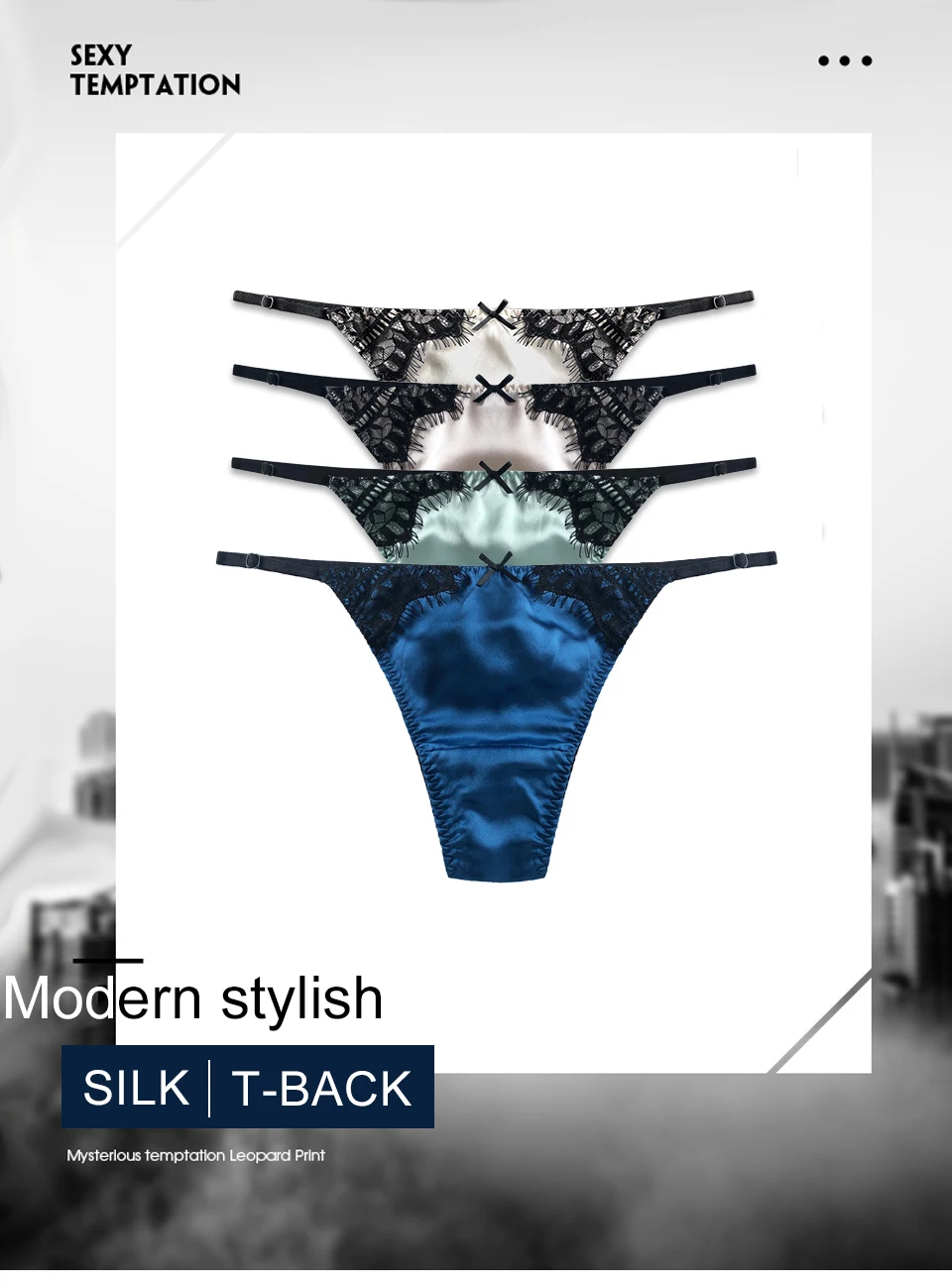 Women's Thong For Sex Silk Panties Female Underwear Seamless Lace Lingerie Low-Rise Ladies Underpants Sex G-string Thong