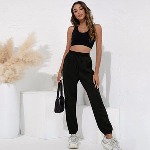 Fitness Clothing Woman Solid Color Pants Autumn Loose High Waist Ankle-length Pants with Belt Pockets Personality Trousers 2021