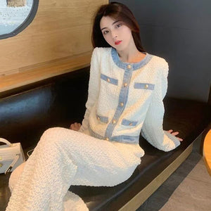 Women's Retro herringbone pants 2-piece set, jacket, mermaid coat and skirt, fashion street suit 2-piece set