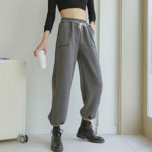 Winter Women Pants Warm Knitted Fleece Inside High Waist Drawstring Elastic Hem Harem Pants Loose Fit Casual Solid Straight Pant