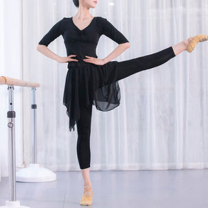 Women 2-in-1 Leggings Soft Modal Chiffon Skirt Asymmetrical Slim Dance Pilates Ballet Jazz Latin Crop Pants Legging Femme