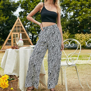 2021 New 2 Pecs Suit Summer Tracksuit Sets Womens Outfits Boho Beach Style Print Underwear Loose Wide Leg Pants Ropa New