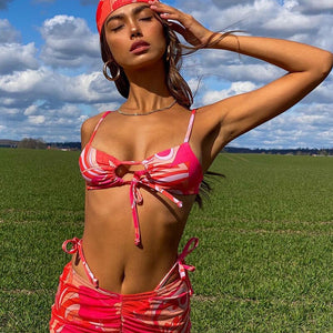 Red 2021 Summer Two Piece Set Crop Top Spaghetti Strap And Wide Leg Pants Women Set Print Casual Outfits